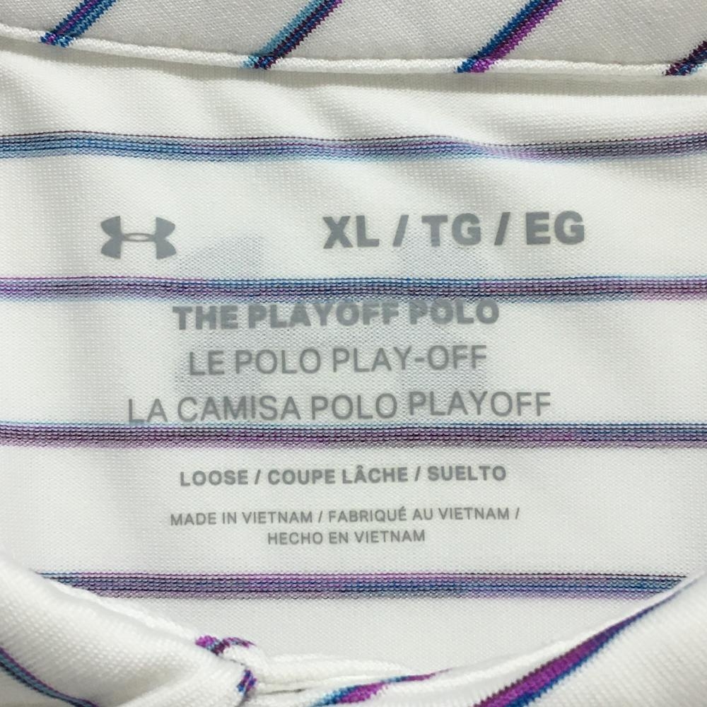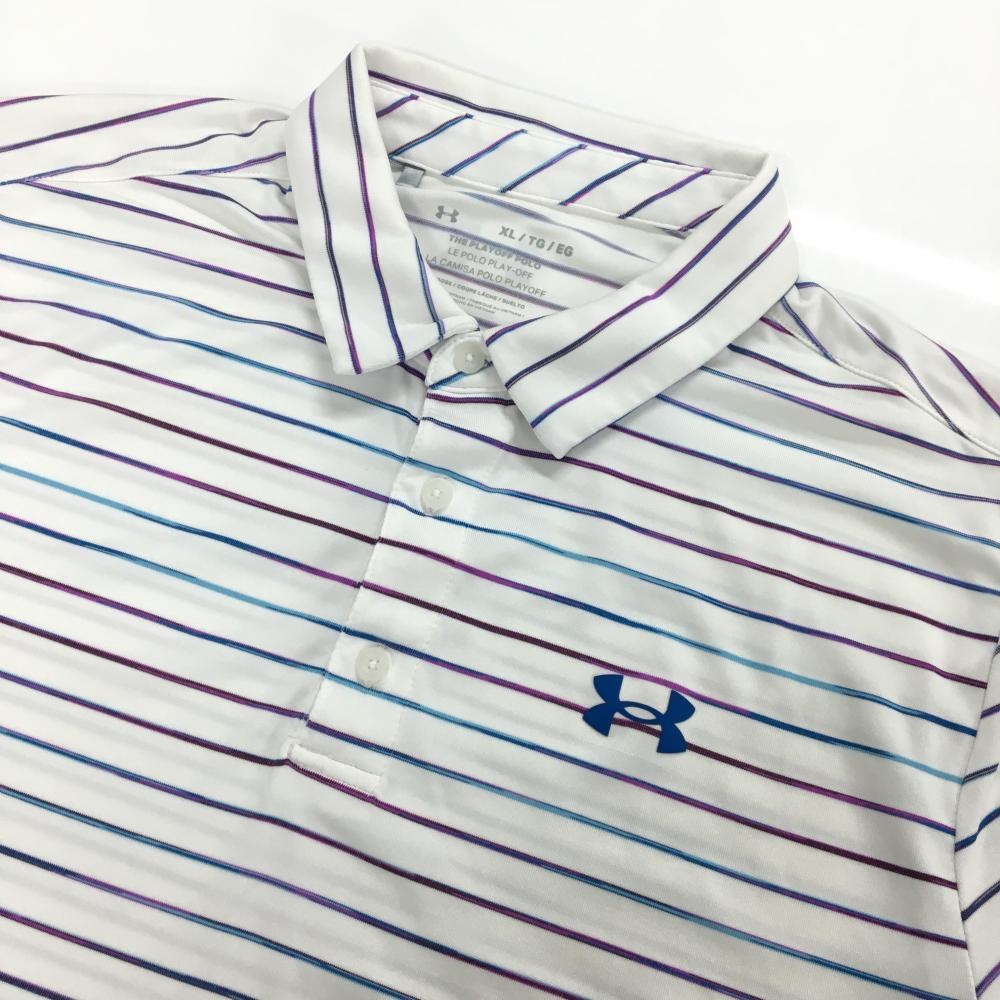 【超美品】アンダーアーマー 半袖ポロシャツ 白×ブルー×パープル ボーダー メンズ XL ゴルフウェア UNDER ARMOUR