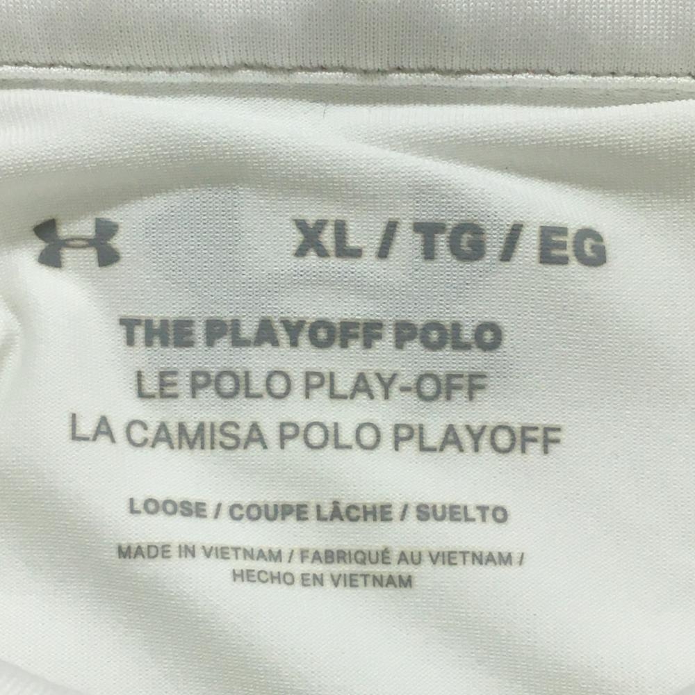 【美品】アンダーアーマー 半袖ポロシャツ 白×ブルー 胸ロゴプリント メンズ XL ゴルフウェア UNDER ARMOUR