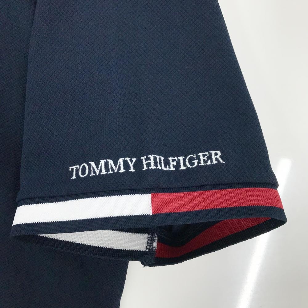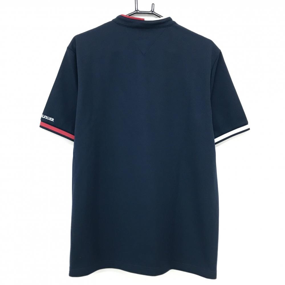 トミーヒルフィガー 半袖ポロシャツ ネイビー×レッド×白 スタンドカラー スナップボタン メンズ XL ゴルフウェア Tommy Hilfiger Golf
