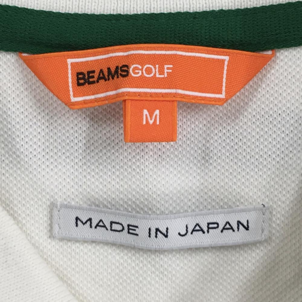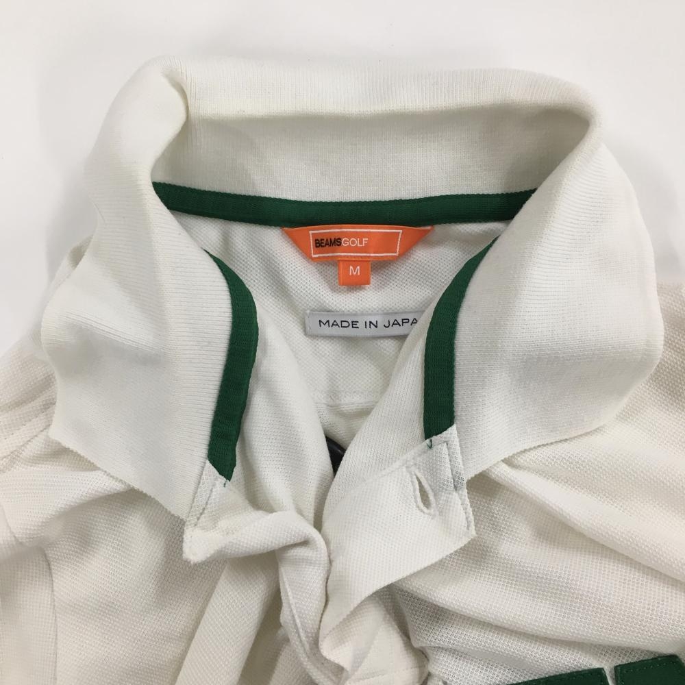 ビームスゴルフ 半袖ポロシャツ 白×グリーン ワッペン メンズ M ゴルフウェア BEAMS GOLF