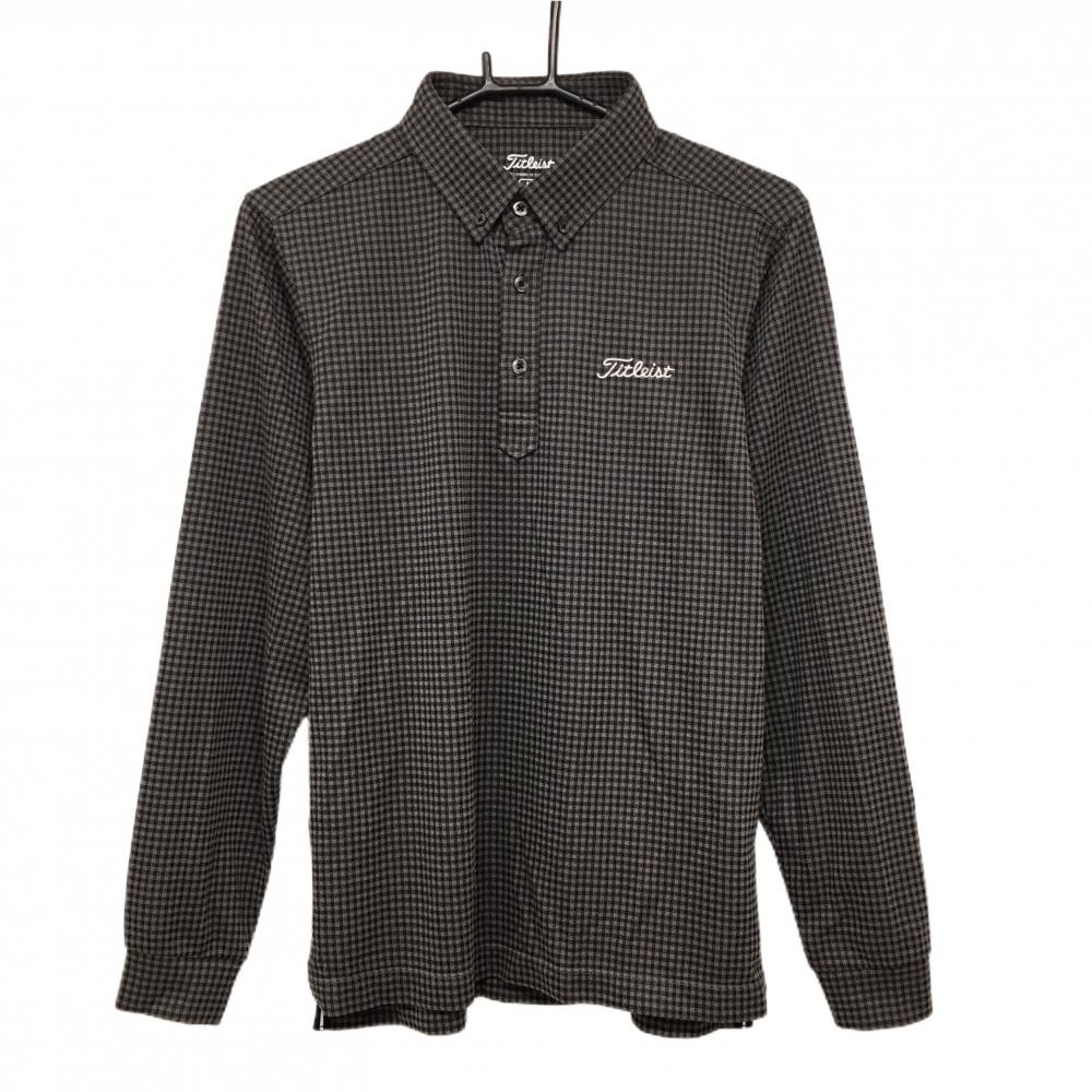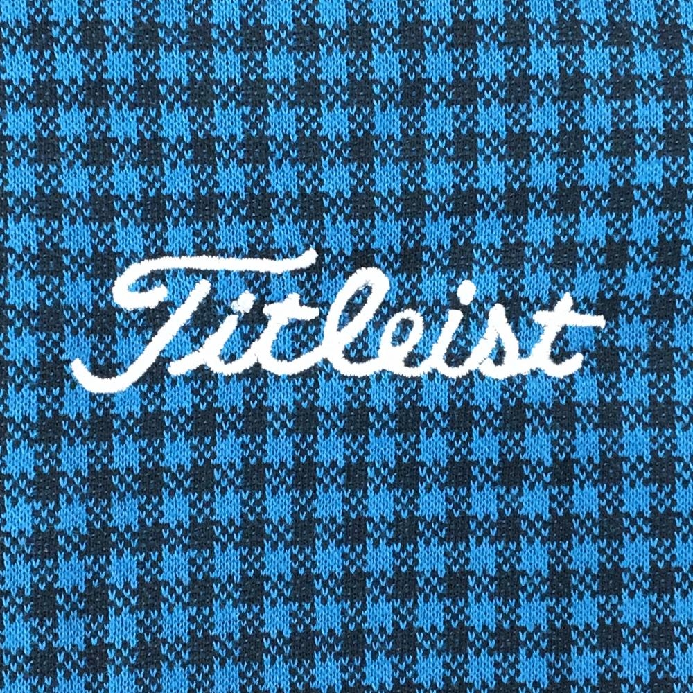 【超美品】タイトリスト 長袖ポロシャツ ブルー系×黒 チェック ボタンダウン メンズ M ゴルフウェア TITLEIST
