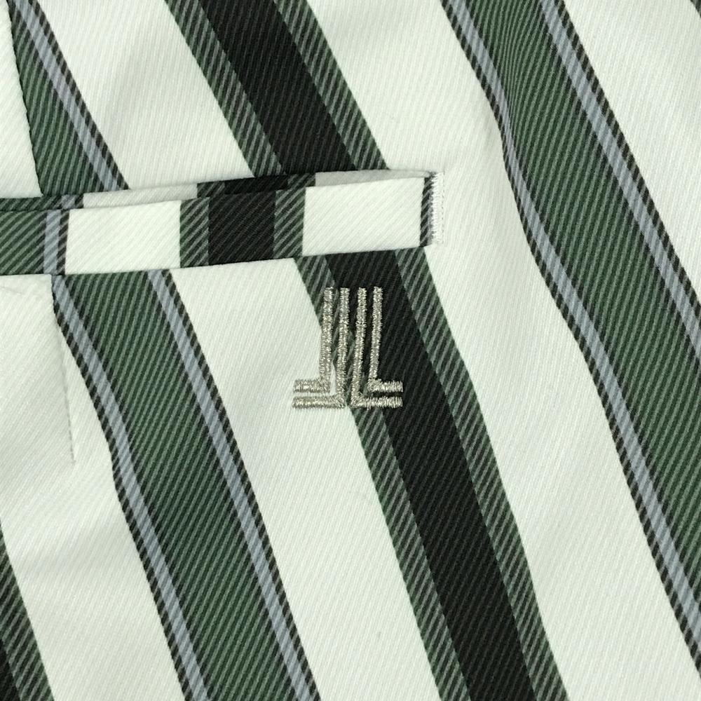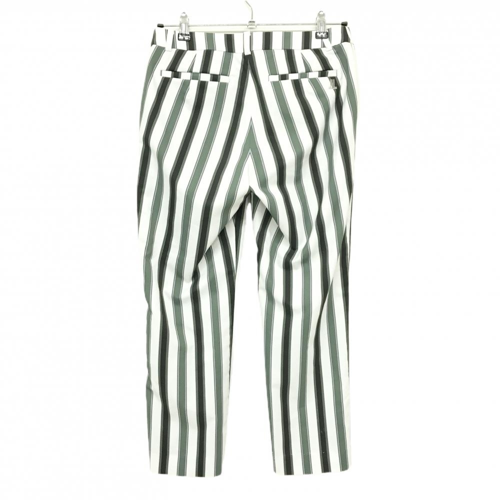 【美品】ランバンスポール 半端丈パンツ 白×グリーン ストライプ レディース 38(M) ゴルフウェア LANVIN SPORT