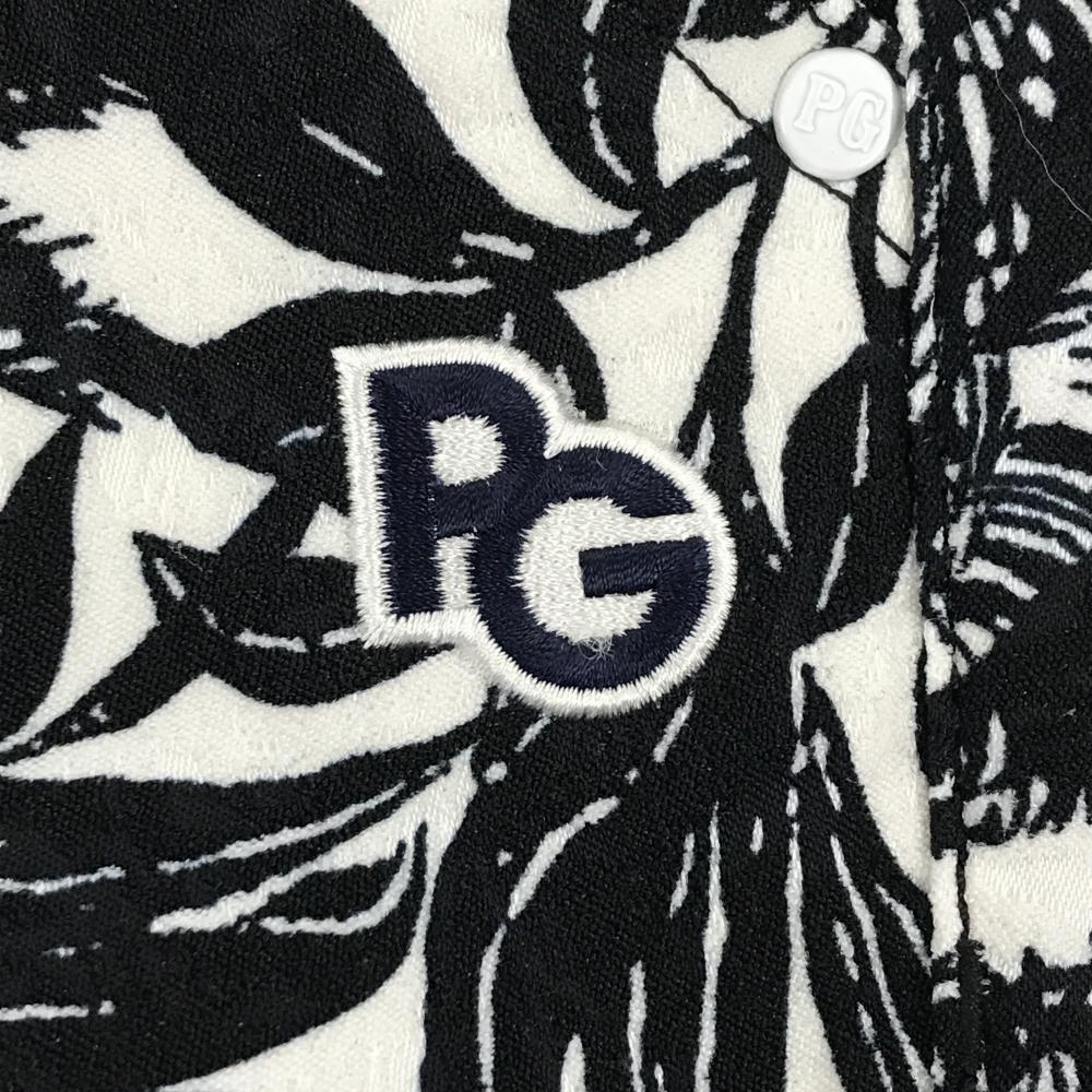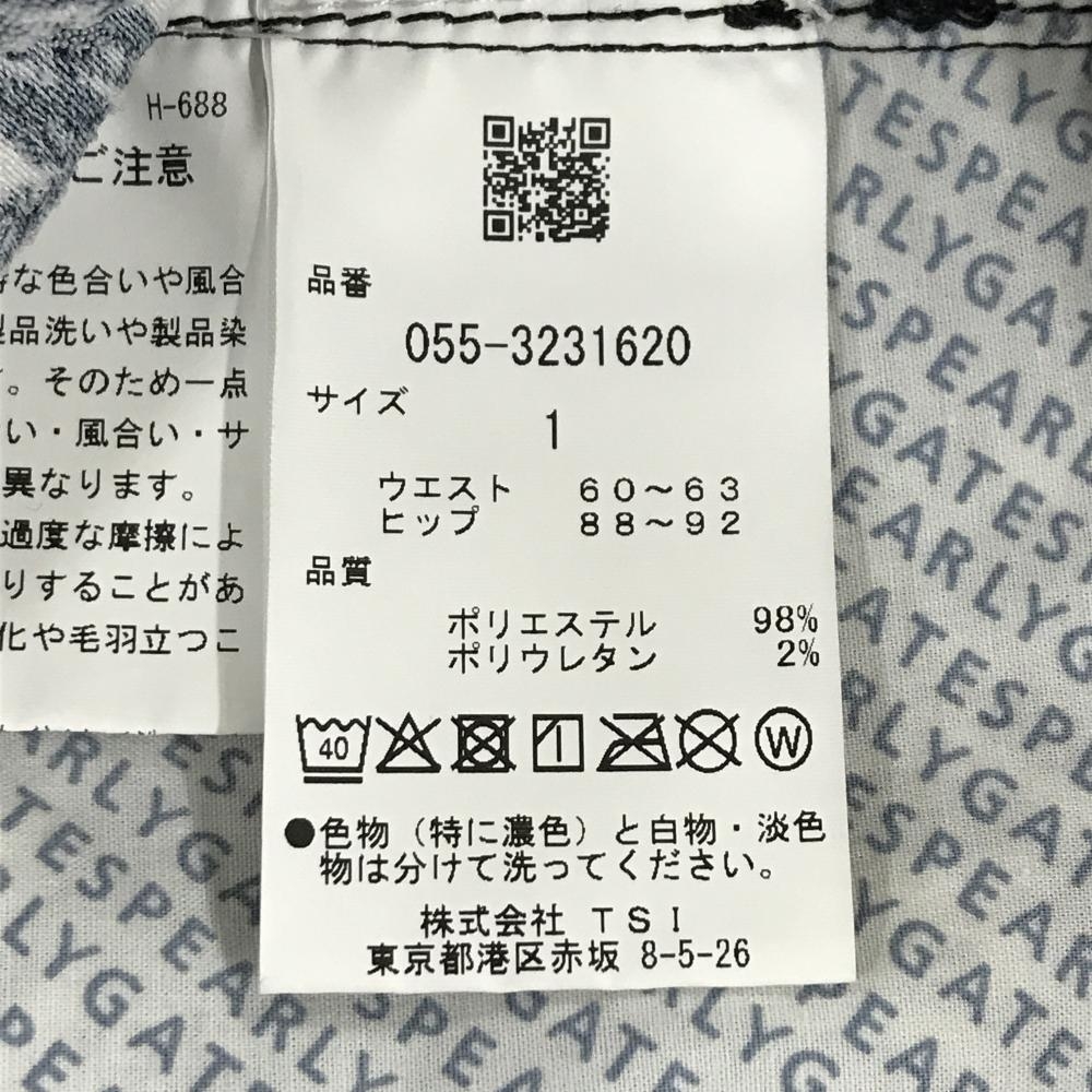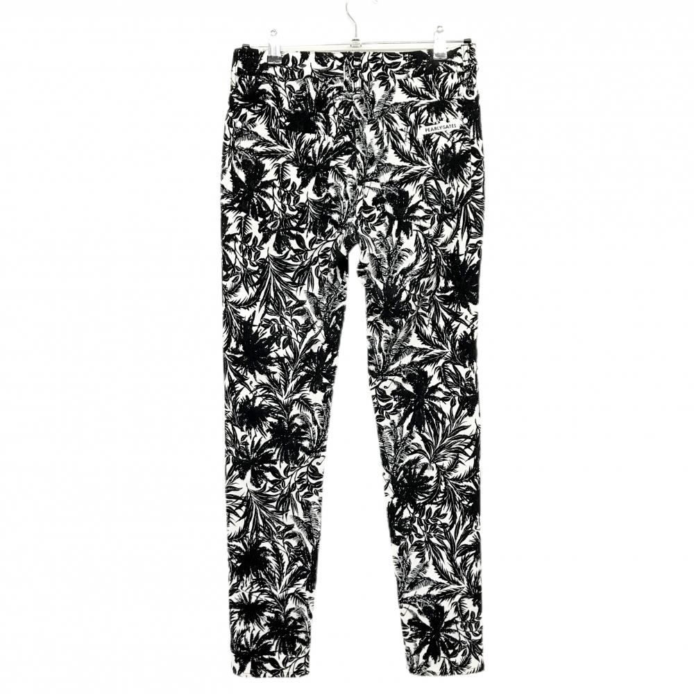 【超美品】パーリーゲイツ パンツ 白×黒 リーフ柄 ストレッチ レディース 1(M) ゴルフウェア PEARLY GATES