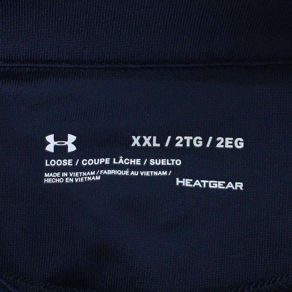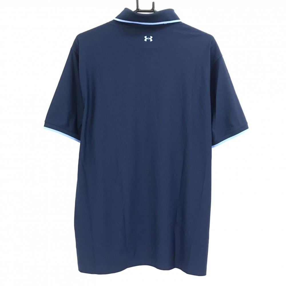 【美品】アンダーアーマー 半袖ポロシャツ ネイビー×ブルー 襟・袖口ライン メンズ XXL/2TG/2EG ゴルフウェア 大きいサイズ UNDER ARMOUR