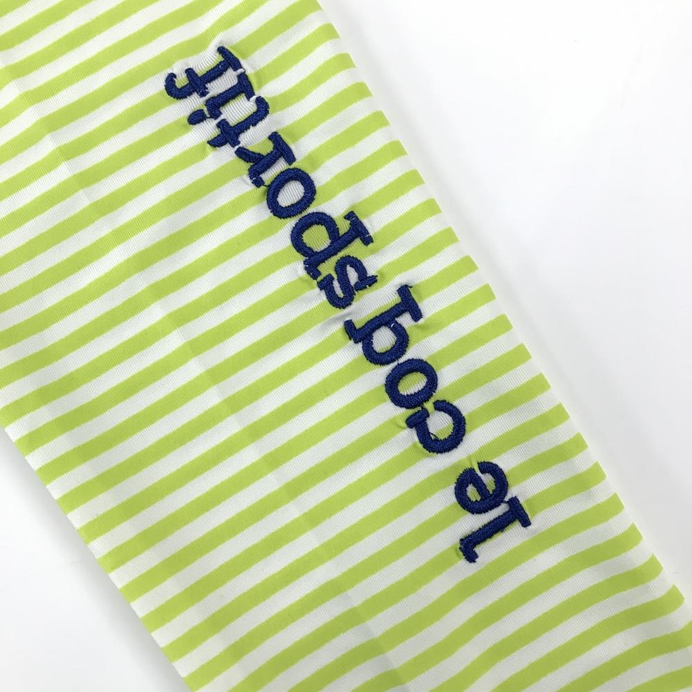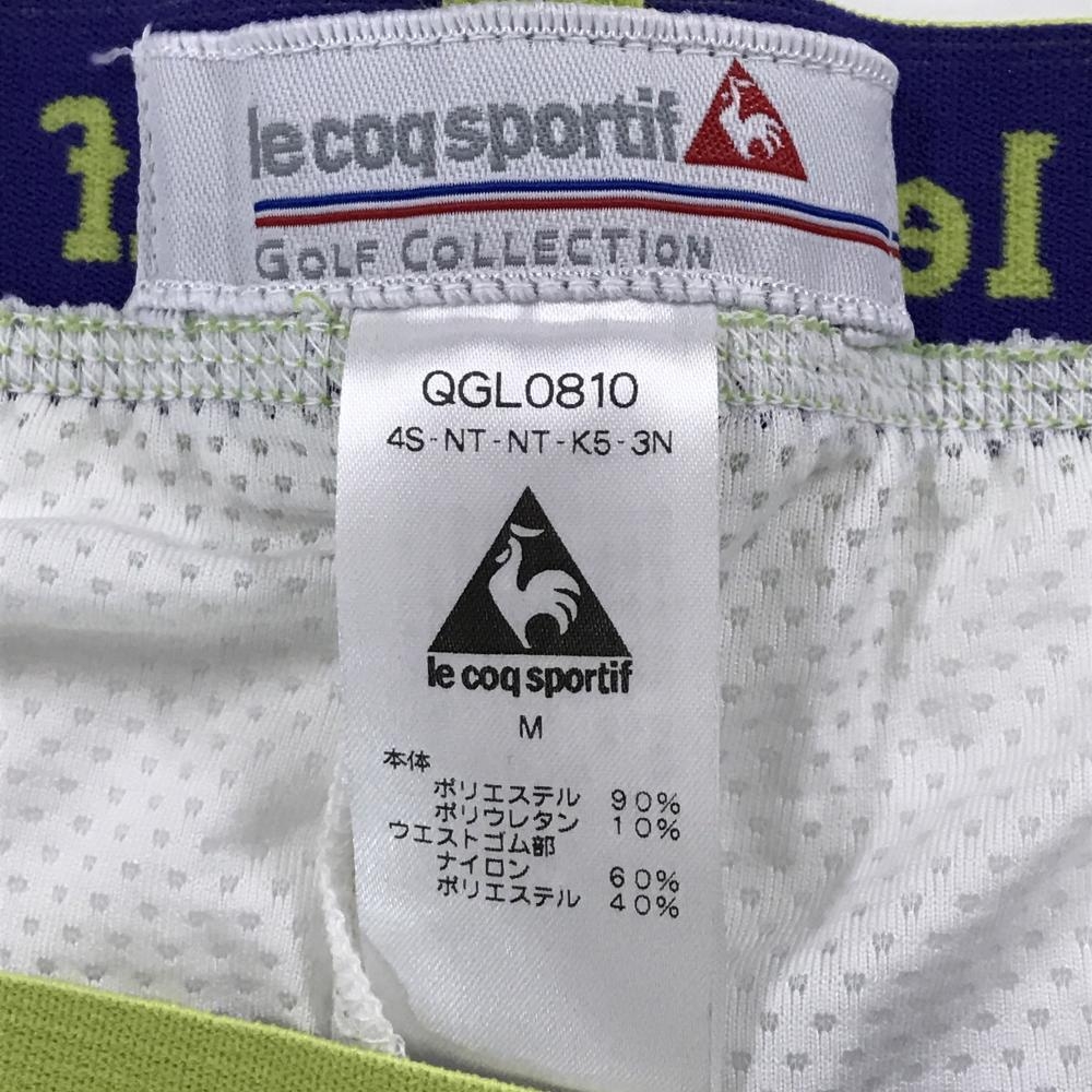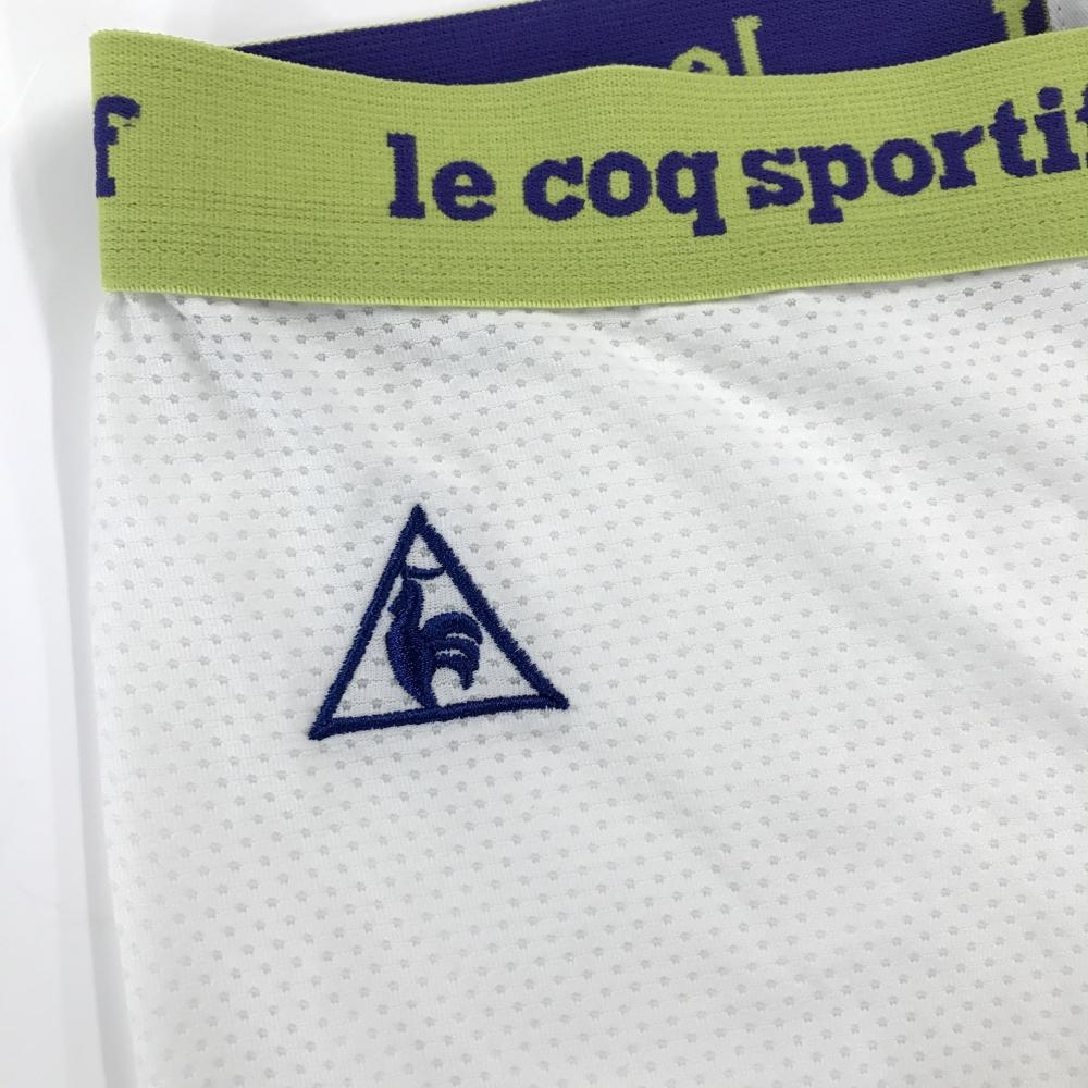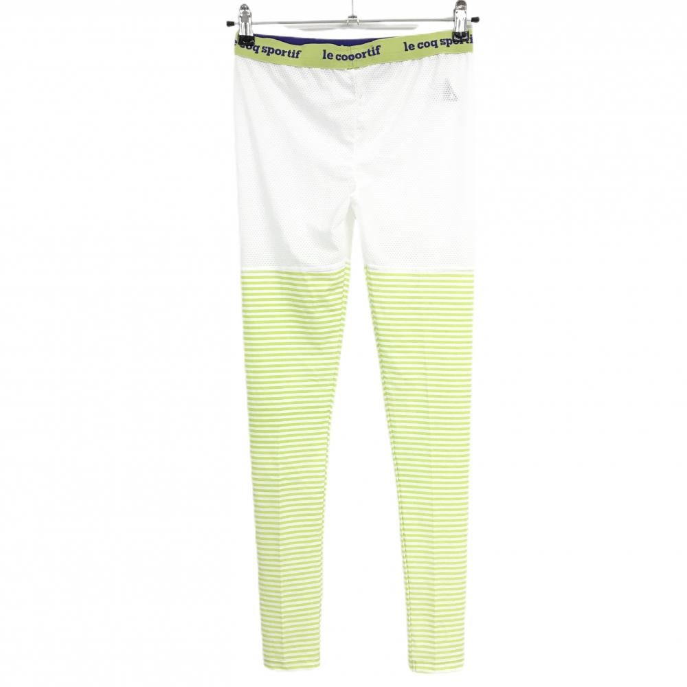 【超美品】ルコックゴルフ レギンス 白×ライトグリーン ボーター 一部メッシュ スパッツ レディース M ゴルフウェア le coq sportif