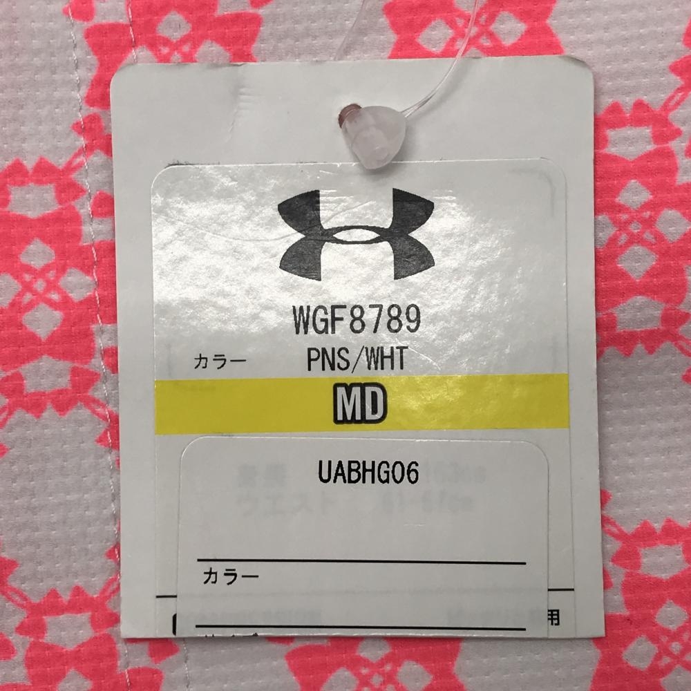 【新品】アンダーアーマー パンツ 白×蛍光ピンク 総柄 heatgear レディース MD ゴルフウェア UNDER ARMOUR
