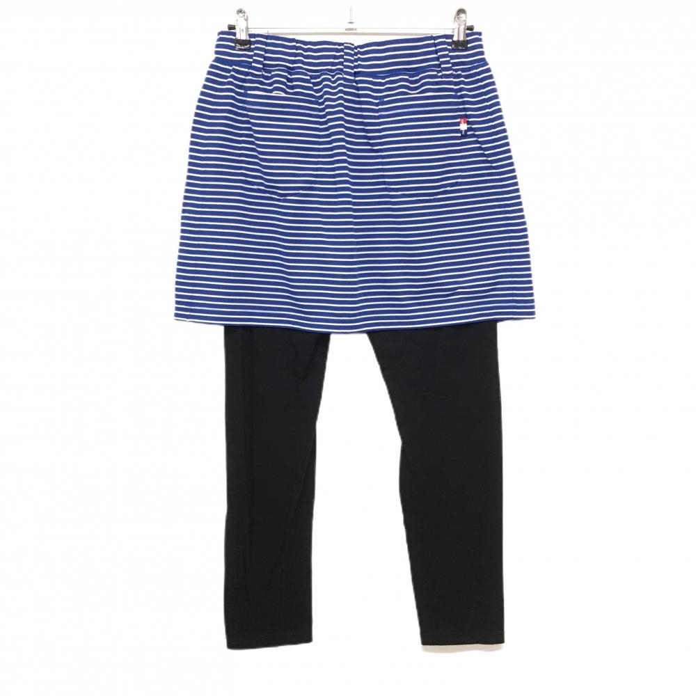 【美品】マリクレール レギンス付スカート ブルー×白 ボーダー レディース LL ゴルフウェア marie claire