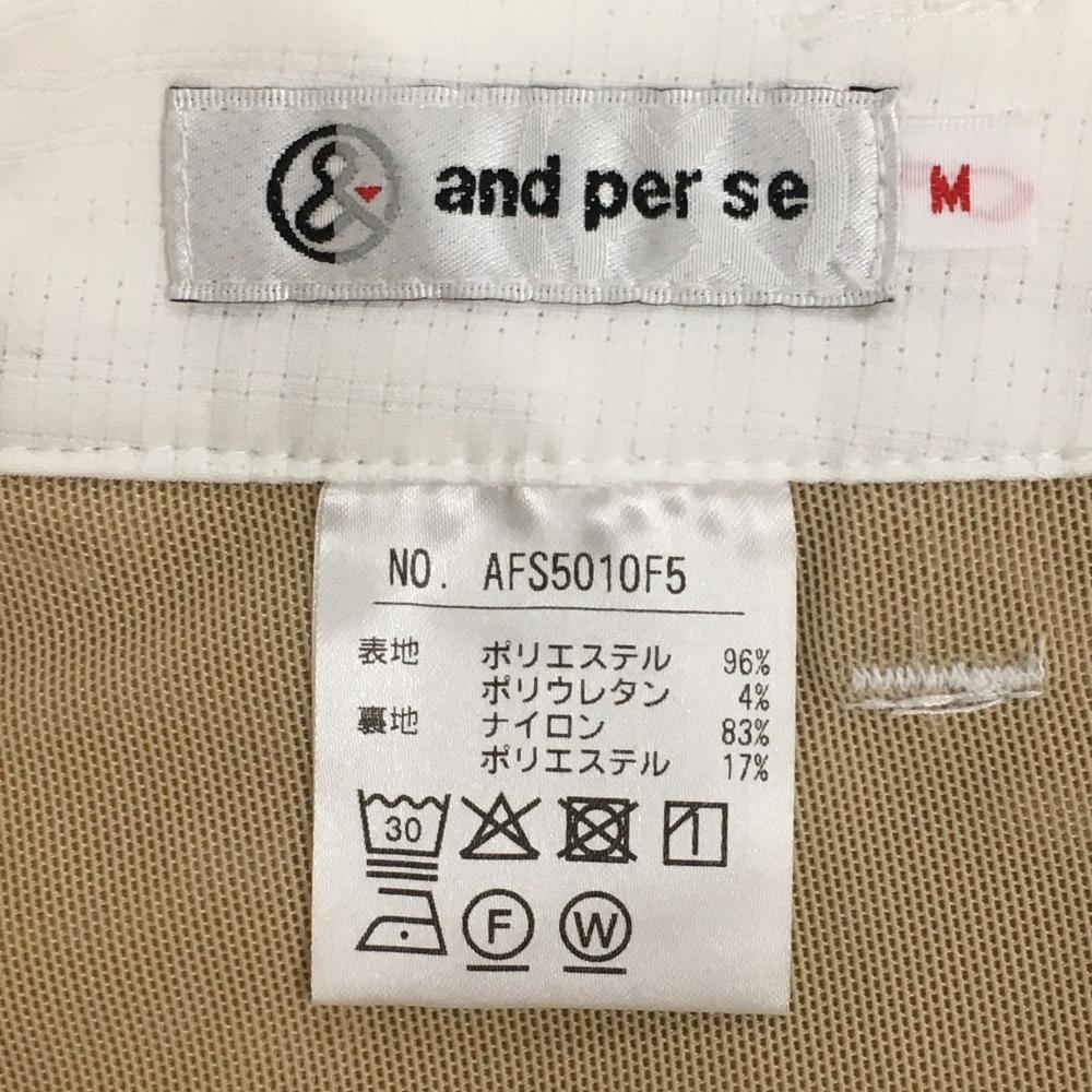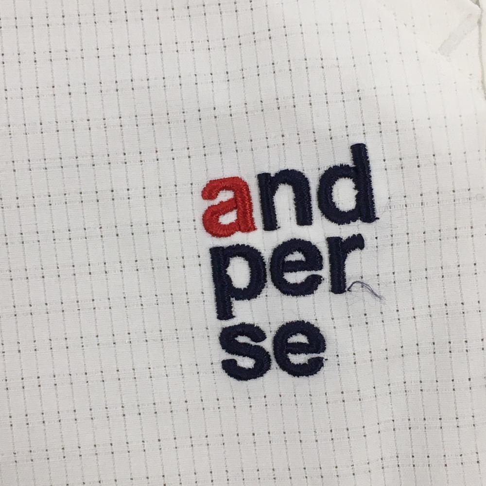 アンパスィ パンツ 白×ネイビー メッシュ調 ロゴ刺しゅう レディース M ゴルフウェア and per se