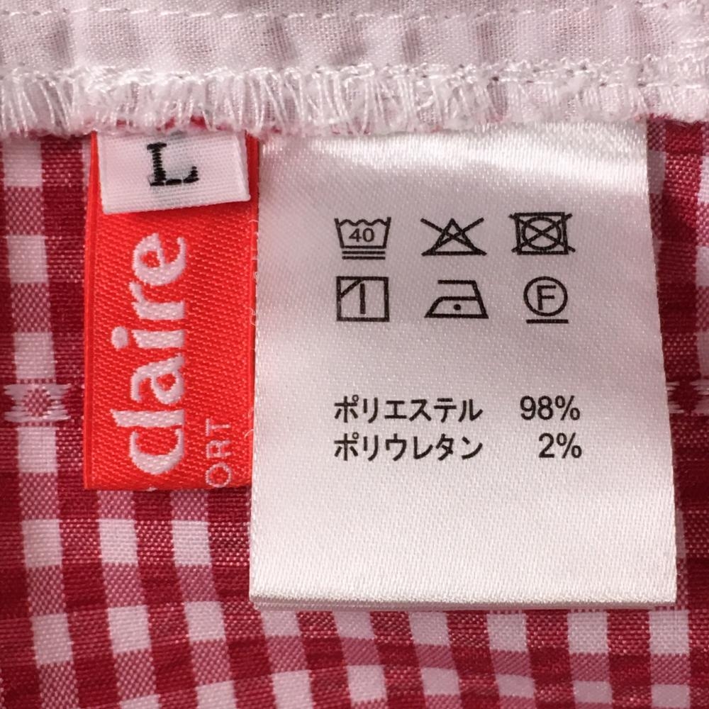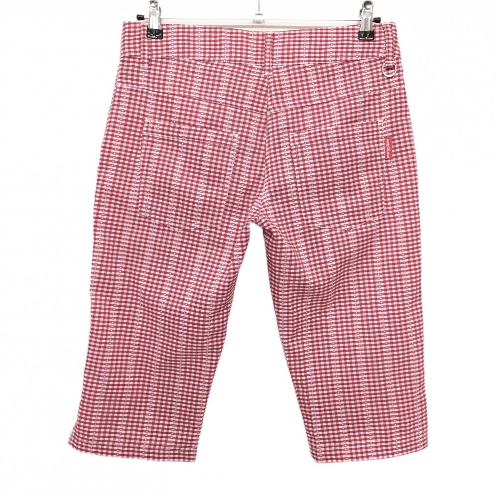 【超美品】マリクレールスポール 半端丈パンツ レッド×白 ギンガムチェック サッカー生地 レディース L ゴルフウェア marie claire