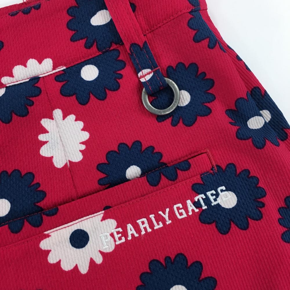 【超美品】パーリーゲイツ スカート レッド系×ネイビー×白 花柄 ストレッチ 30周年 レディース 0(S) ゴルフウェア PEARLY GATES