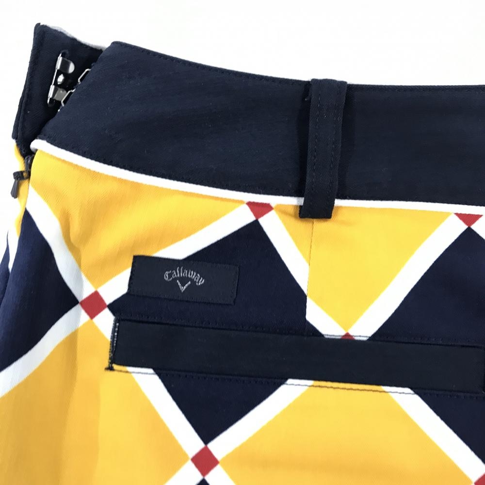 【超美品】キャロウェイ スカート ネイビー×イエロー スクエア総柄 ストレッチ レディース L ゴルフウェア Callaway