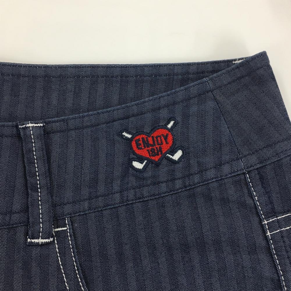 【美品】フィラゴルフ パンツ ネイビー×白 ステッチ ストライプ地模様 ステッチ レディース L ゴルフウェア FILA GOLF