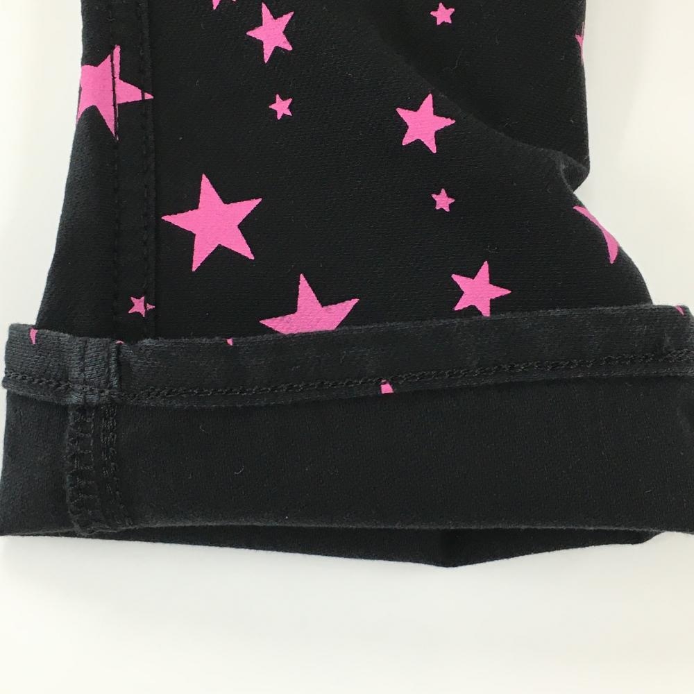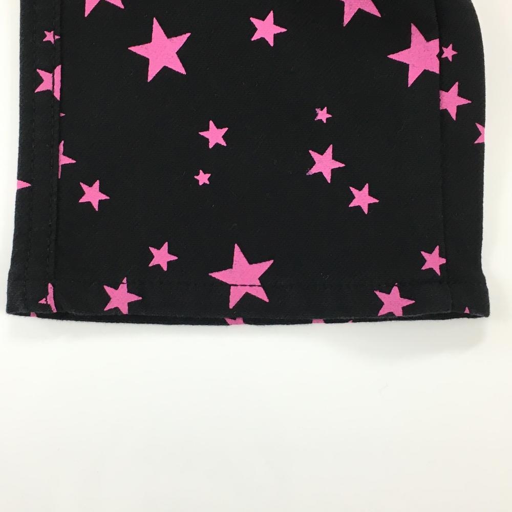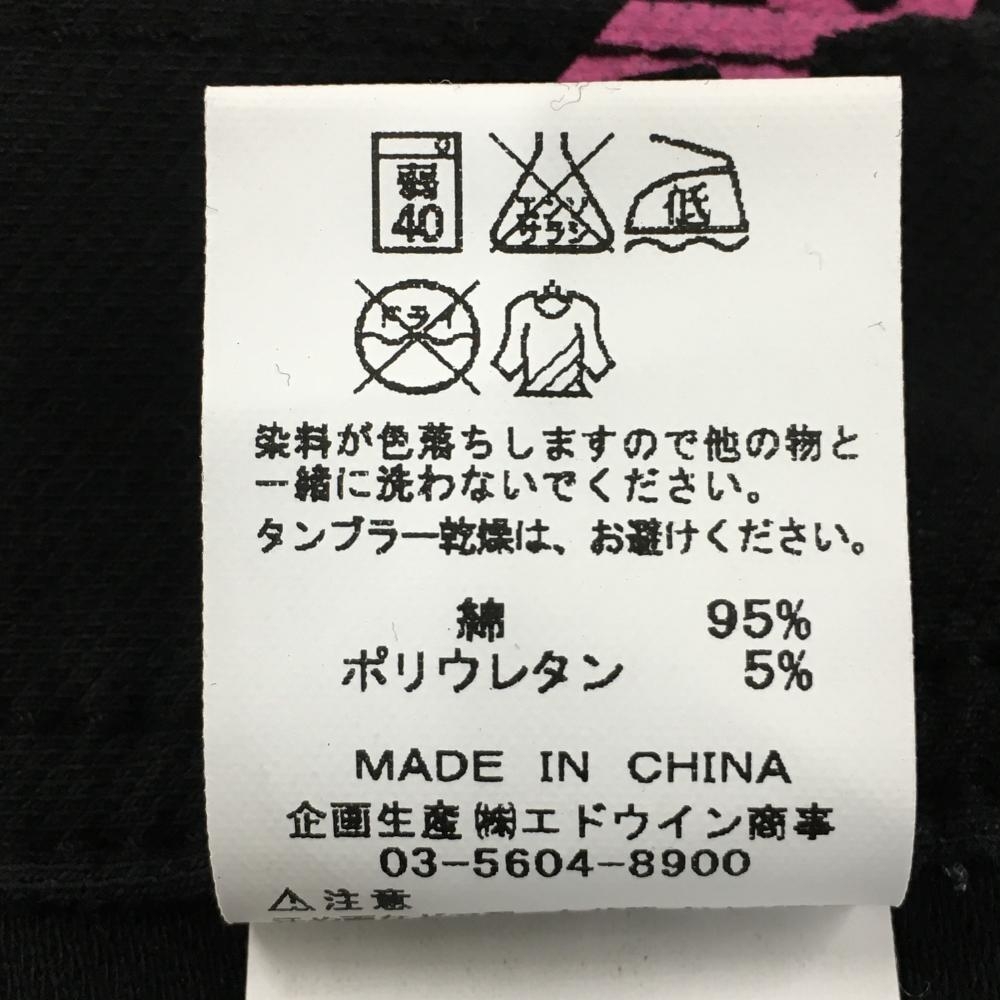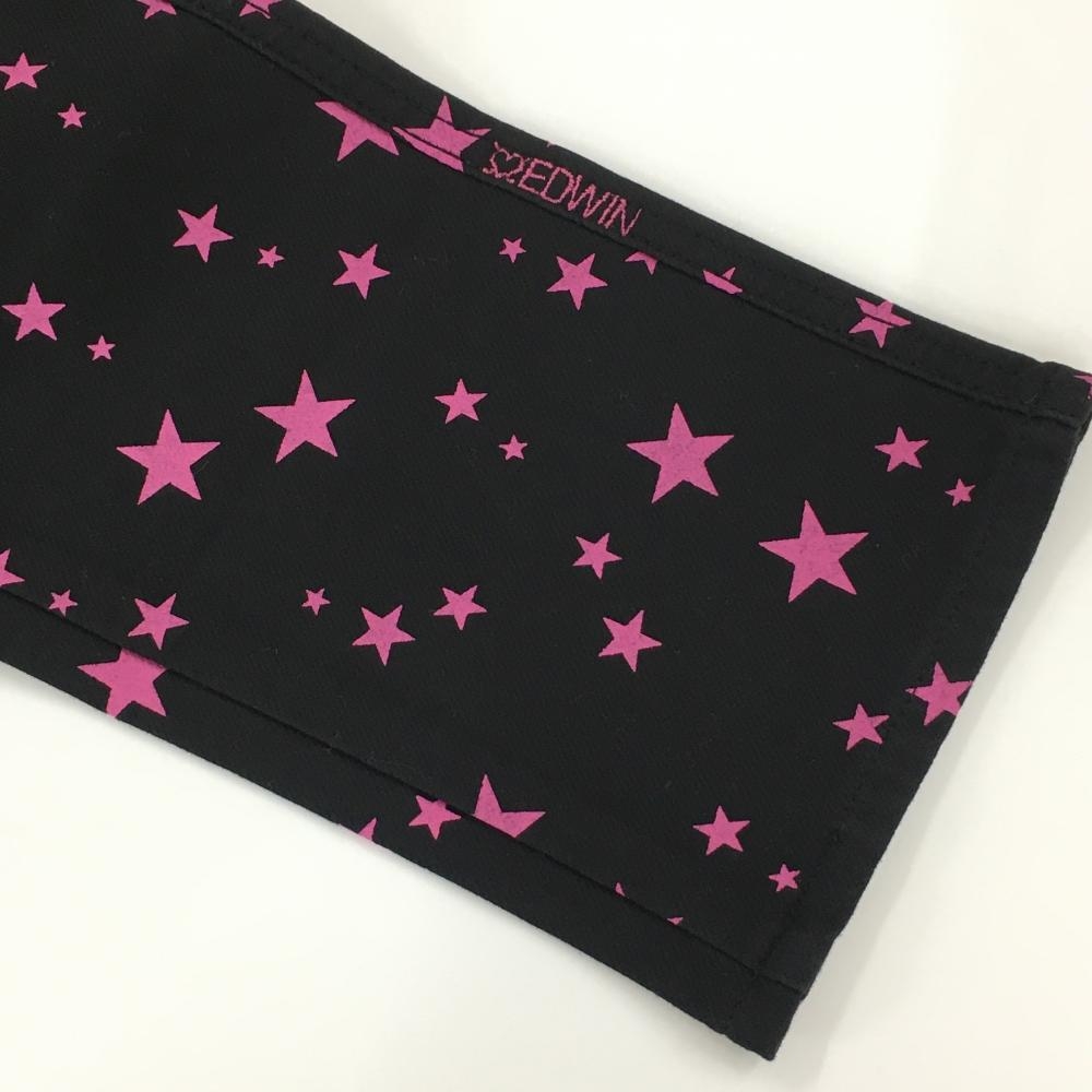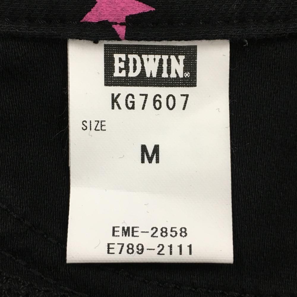 【美品】エドウィン 七分丈ストレッチパンツ 黒×ピンク 星総柄 ウエスト一部ゴム レディース M ゴルフウェア EDWIN GOLF