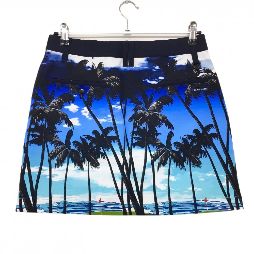 【新品】パーリーゲイツ スカート 黒×ブルー ヤシの木柄 ストレッチ レディース 1(M) ゴルフウェア PEARLY GATES