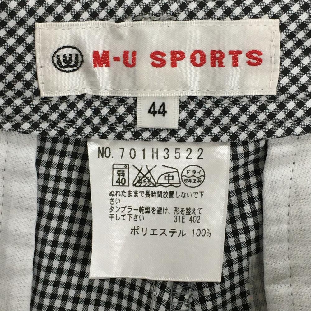 【美品】MUスポーツ 半端丈パンツ グレー×黒 チェック サイドポケット ラインストーン レディース 44(XL) ゴルフウェア M・U SPORTS