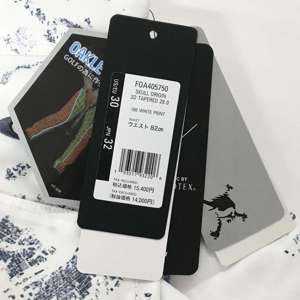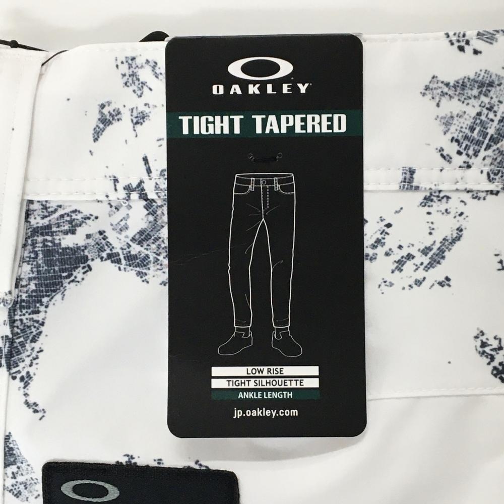 【新品】オークリー パンツ 白×ネイビー 総柄 ストレッチ 吸汗速乾 UVカット メンズ 32 ゴルフウェア Oakley