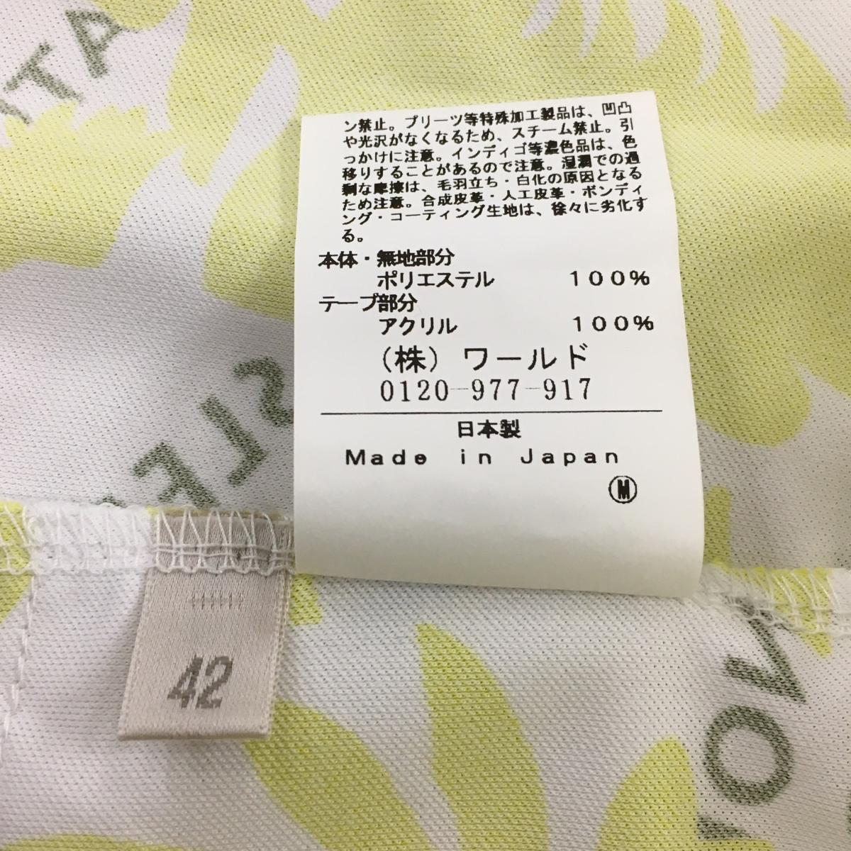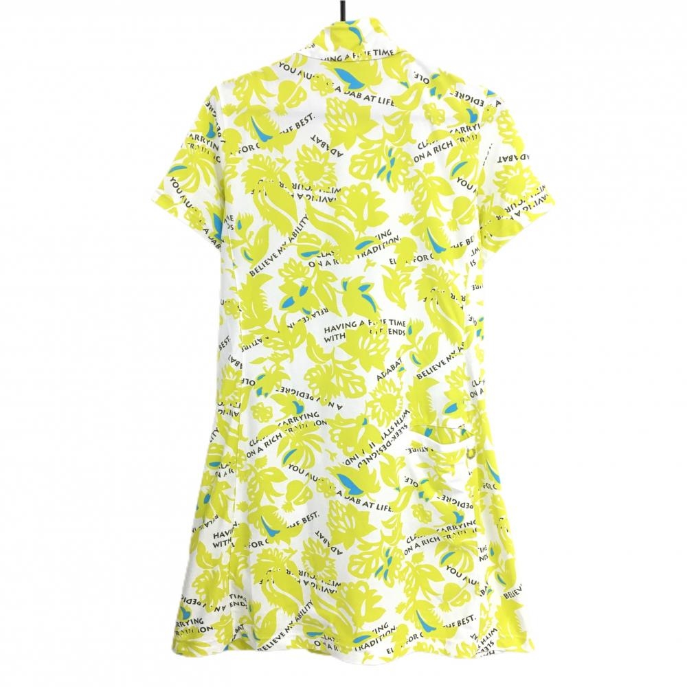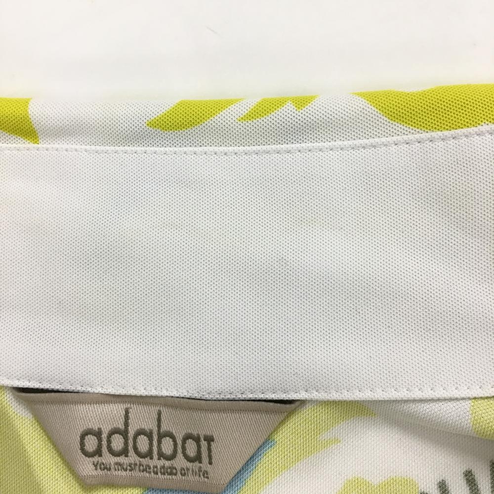 【美品】アダバット 半袖ハイネックワンピース 白×イエロー 花柄 フルジップ レディース 42(XL) ゴルフウェア adabat