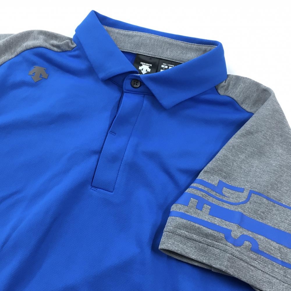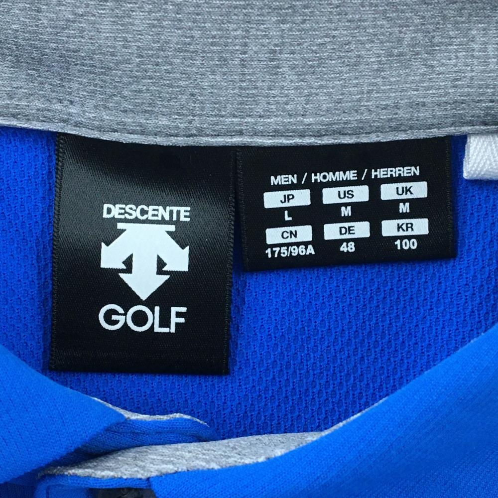 【超美品】デサントゴルフ 半袖ポロシャツ ブルー×グレー ロゴ 中田英寿 メンズ L ゴルフウェア DESCENTE