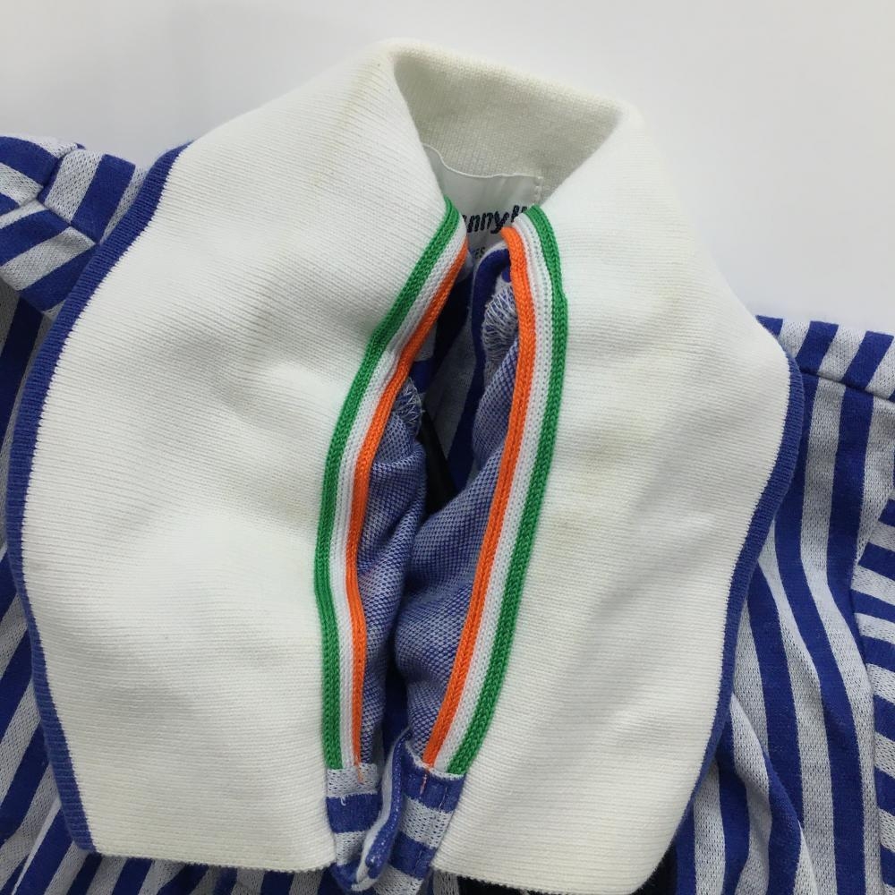 ジャックバニー 半袖ポロシャツ ブルー×グレー ストライプ メンズ 4(M) ゴルフウェア Jack Bunny