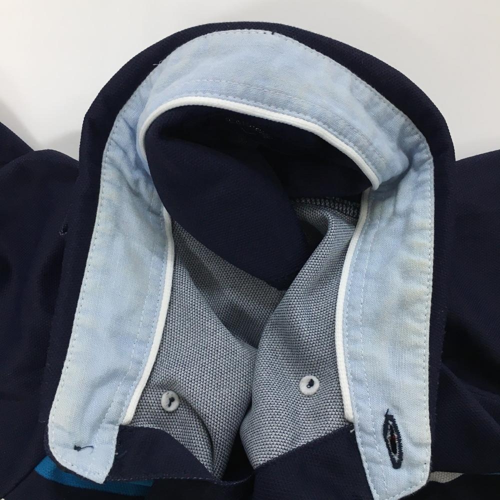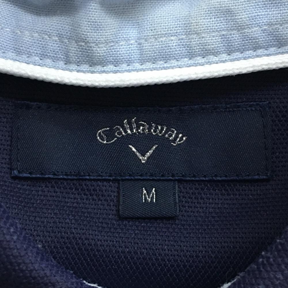 キャロウェイ 半袖ポロシャツ ネイビー×白 ボーダー ロゴ刺しゅう ボタンダウン メンズ M ゴルフウェア Callaway