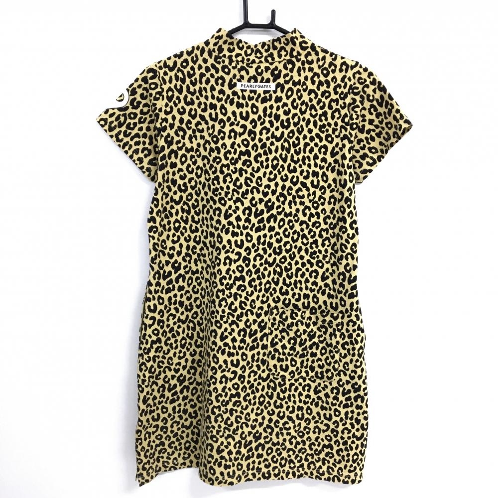 【超美品】パーリーゲイツ 半袖ハイネックワンピース イエローベージュ×ブラウン レディース 0(S) ゴルフウェア PEARLY GATES