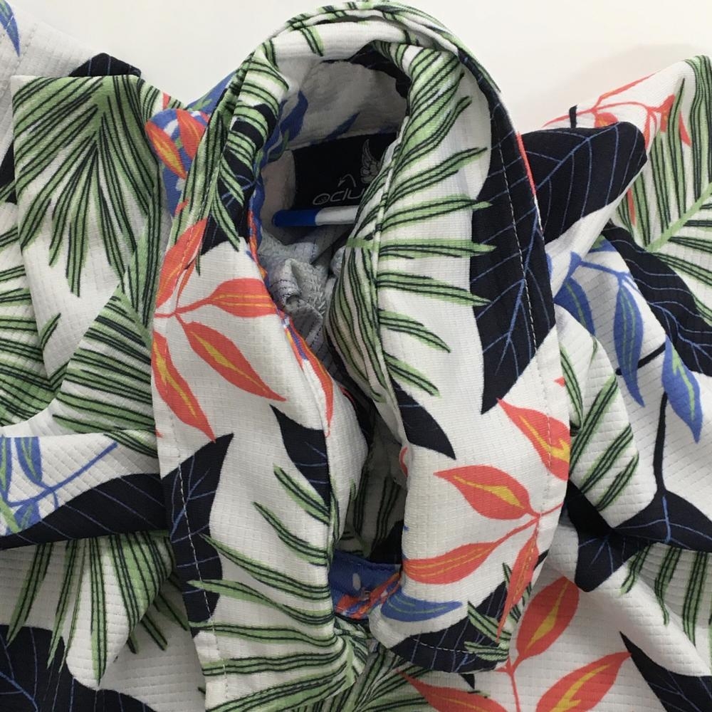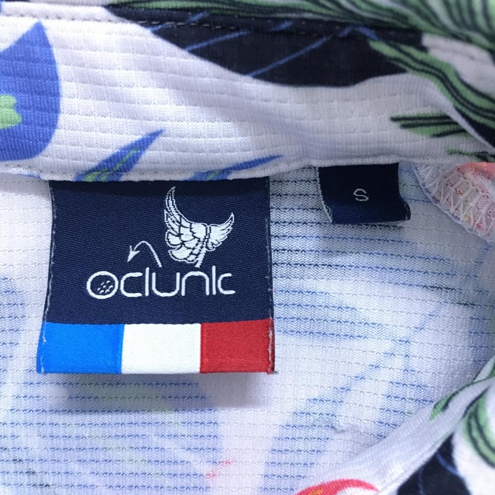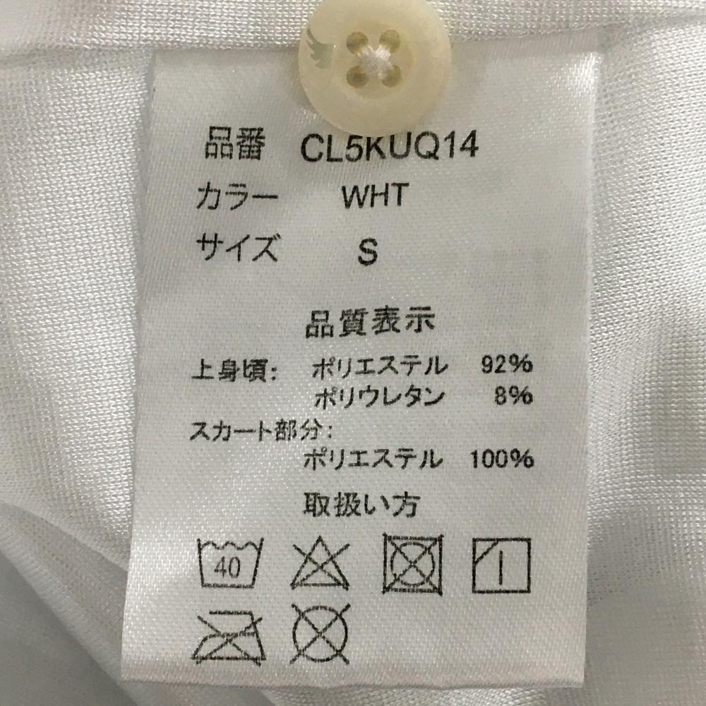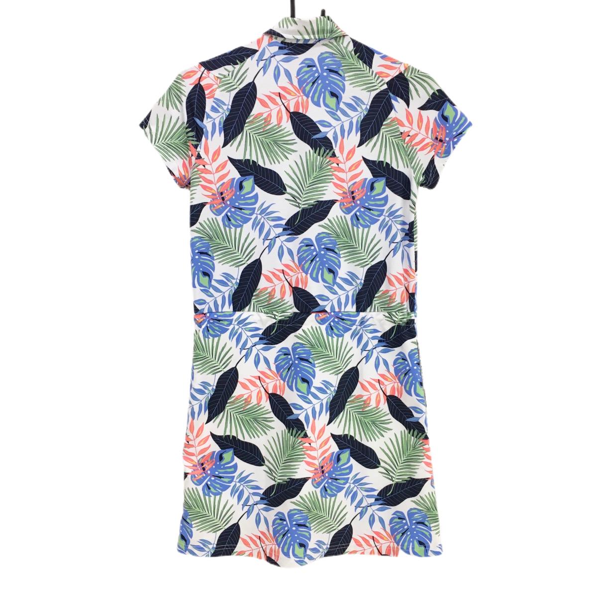 【美品】クランク 半袖ポロワンピース 白×マルチカラー リーフ総柄 内側インナースカート付 レディース S ゴルフウェア CLUNK