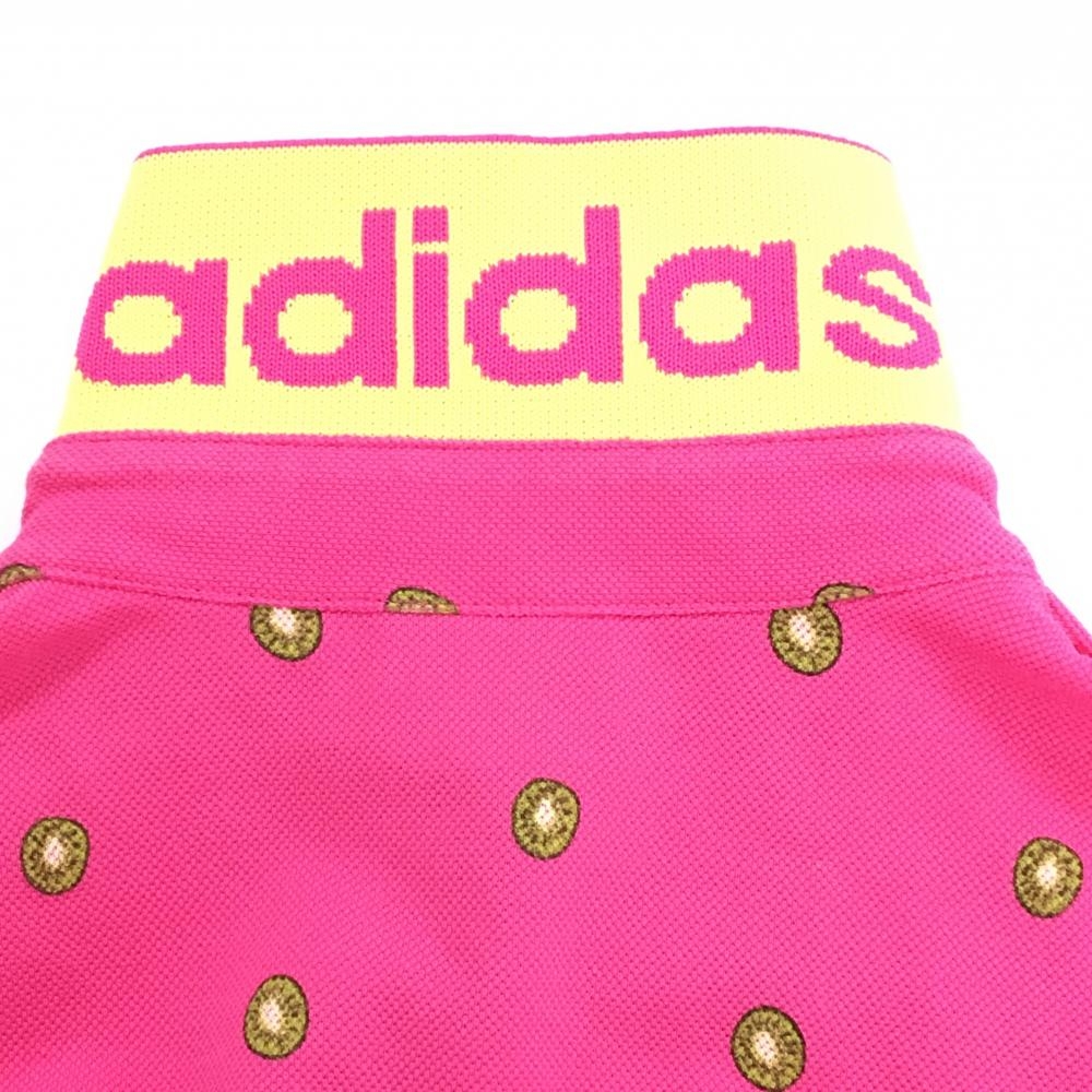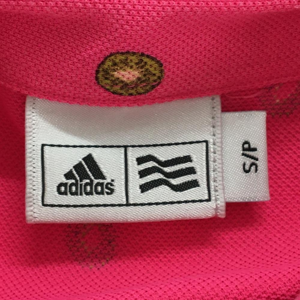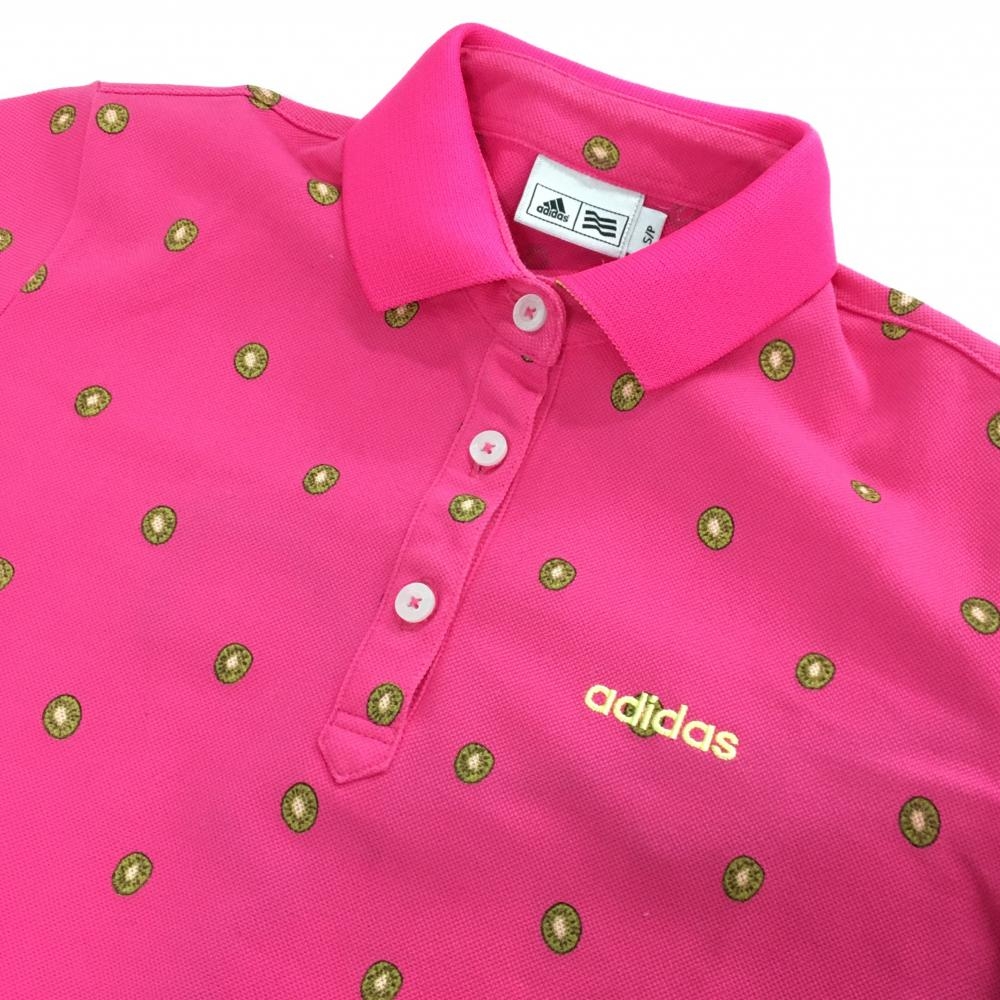 【超美品】アディダス 半袖ポロシャツ ピンク×ライトグリーン キウイ柄 ロゴ刺しゅう 襟裏ロゴ レディース S/P ゴルフウェア adidas