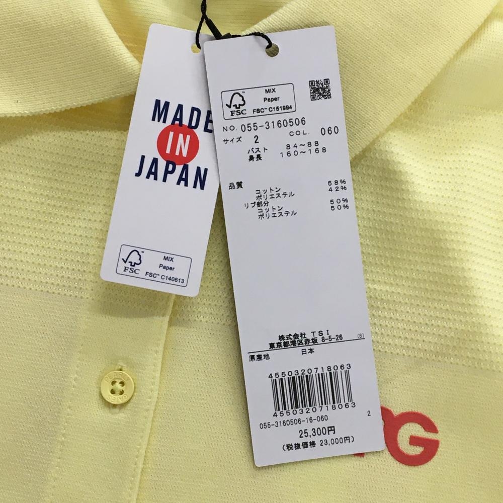 【新品】パーリーゲイツ 半袖ポロシャツ イエロー×ピンクレッド ボーダー調地模様 レディース 2(L) ゴルフウェア PEARLY GATES