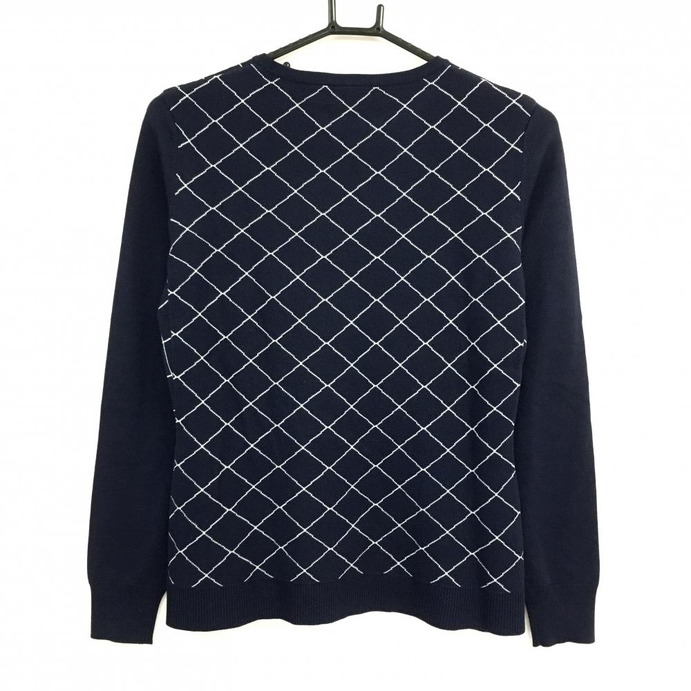 【超美品】デサントゴルフ セーター ネイビー×白 前身頃格子柄 ニット 中田英寿 レディース M ゴルフウェア DESCENTE