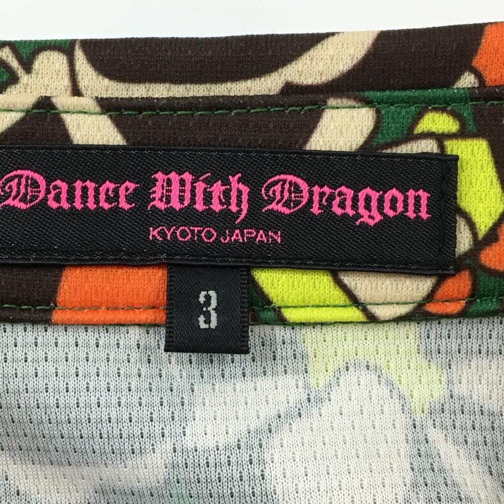 【超美品】ダンスウィズドラゴン 半袖ポロシャツ グリーン×オレンジ キノコ総柄 レディース 3(L) ゴルフウェア Dance With Dragon