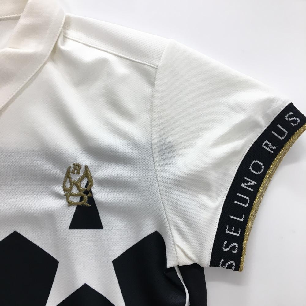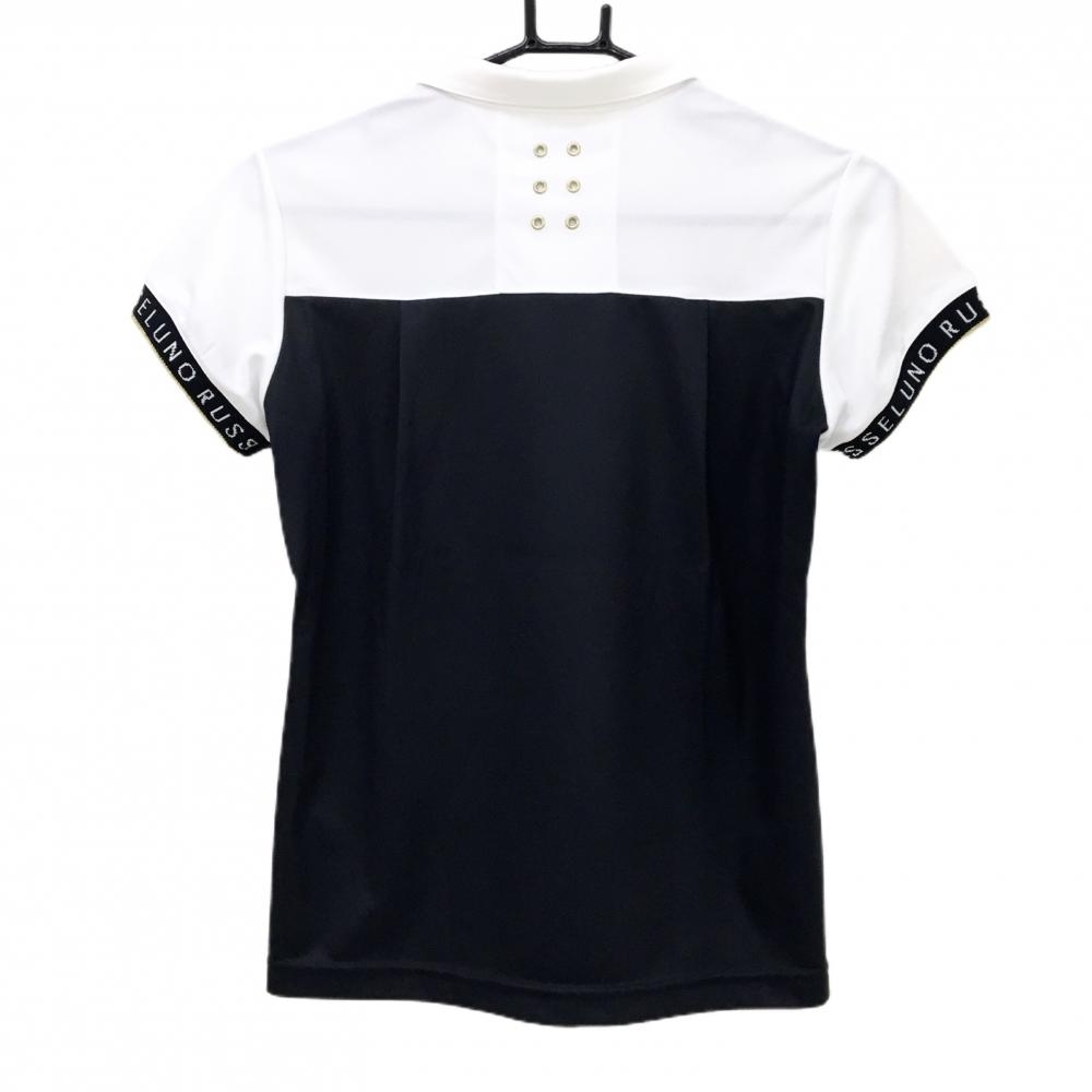 【超美品】ラッセルノ 半袖ポロシャツ 黒×白 胸元星柄 ルチャ スナップボタン レディース 0(S) ゴルフウェア RUSSELUNO