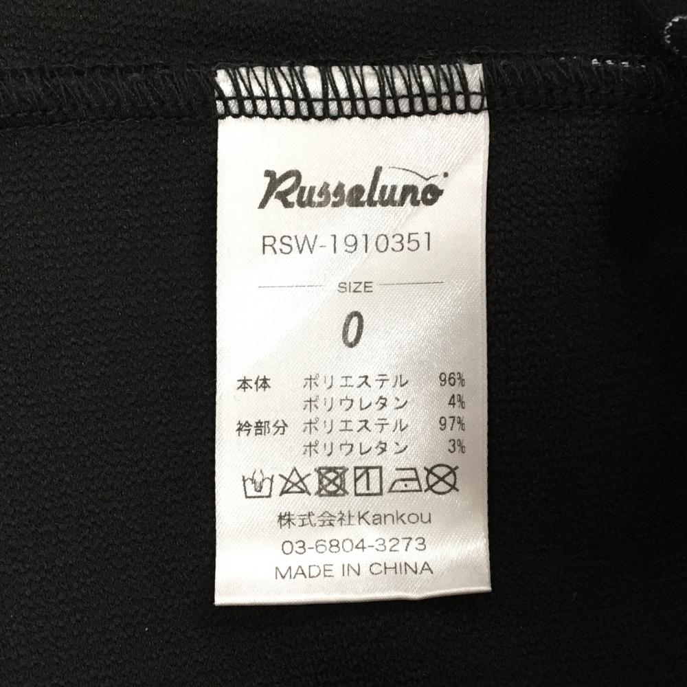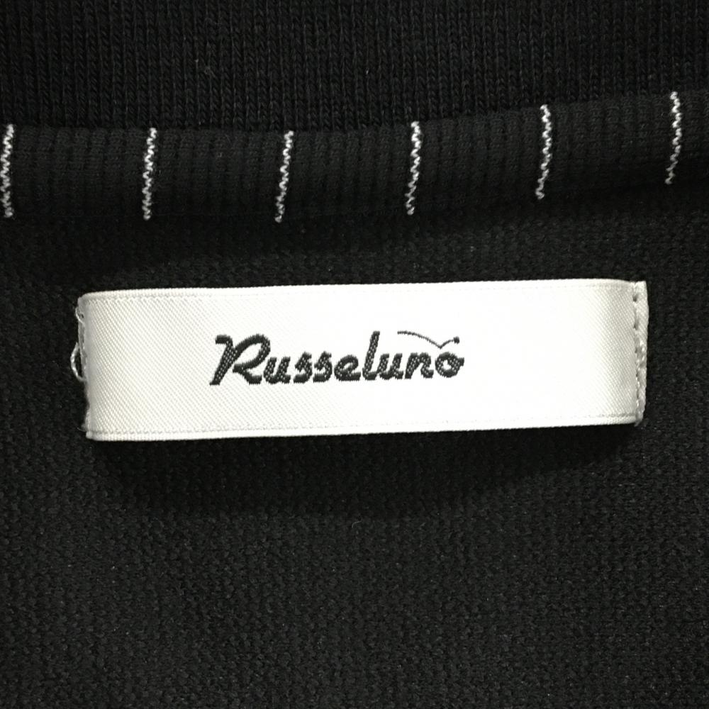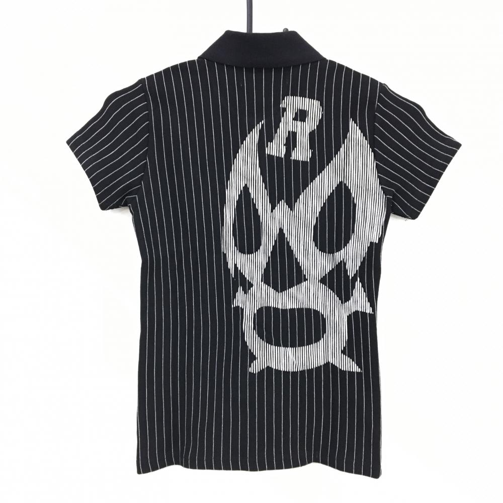 【超美品】ラッセルノ 半袖ポロシャツ 黒×白 背面ビッグルチャ ストライプ ストレッチ レディース 0(S) ゴルフウェア RUSSELUNO