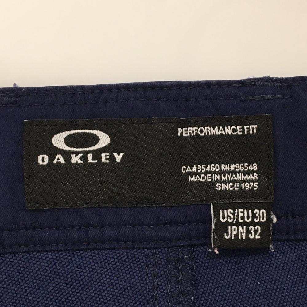 【美品】オークリー 七分丈パンツ ネイビー×白 ロゴ刺しゅう ティー装着可 メンズ 32 ゴルフウェア Oakley