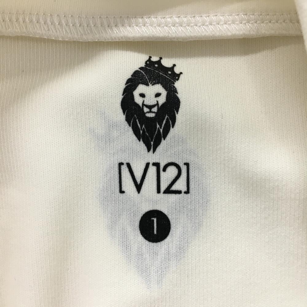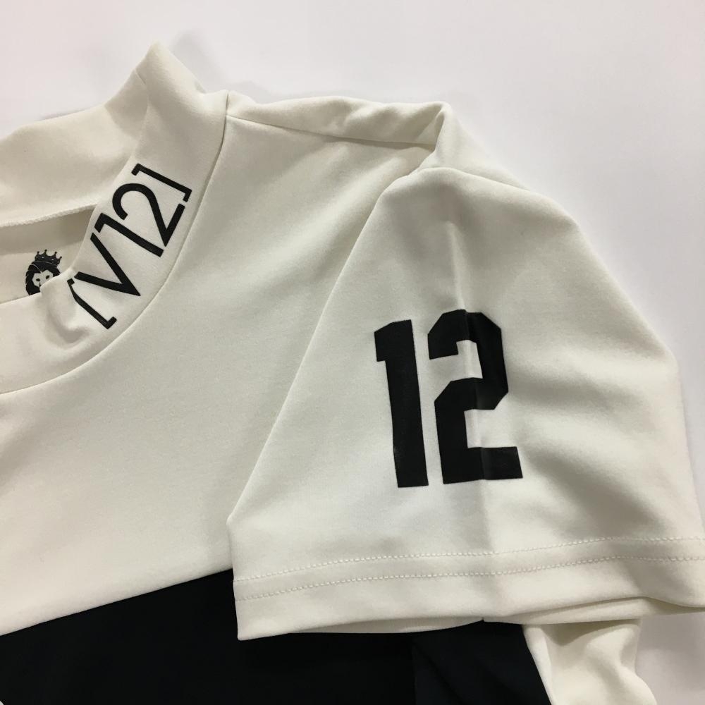 【超美品】V12 半袖ハイネックシャツ 白×黒 胸ライン・ロゴ ストレッチ レディース 1(S) ゴルフウェア V12