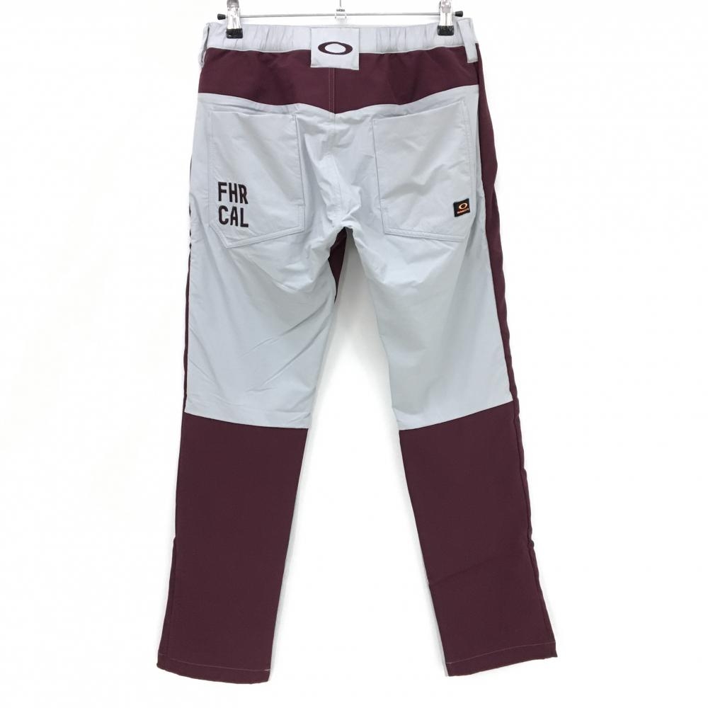 【美品】オークリー パンツ ライトグレー×ボルドー バイカラー ロゴ刺しゅう メンズ M ゴルフウェア Oakley