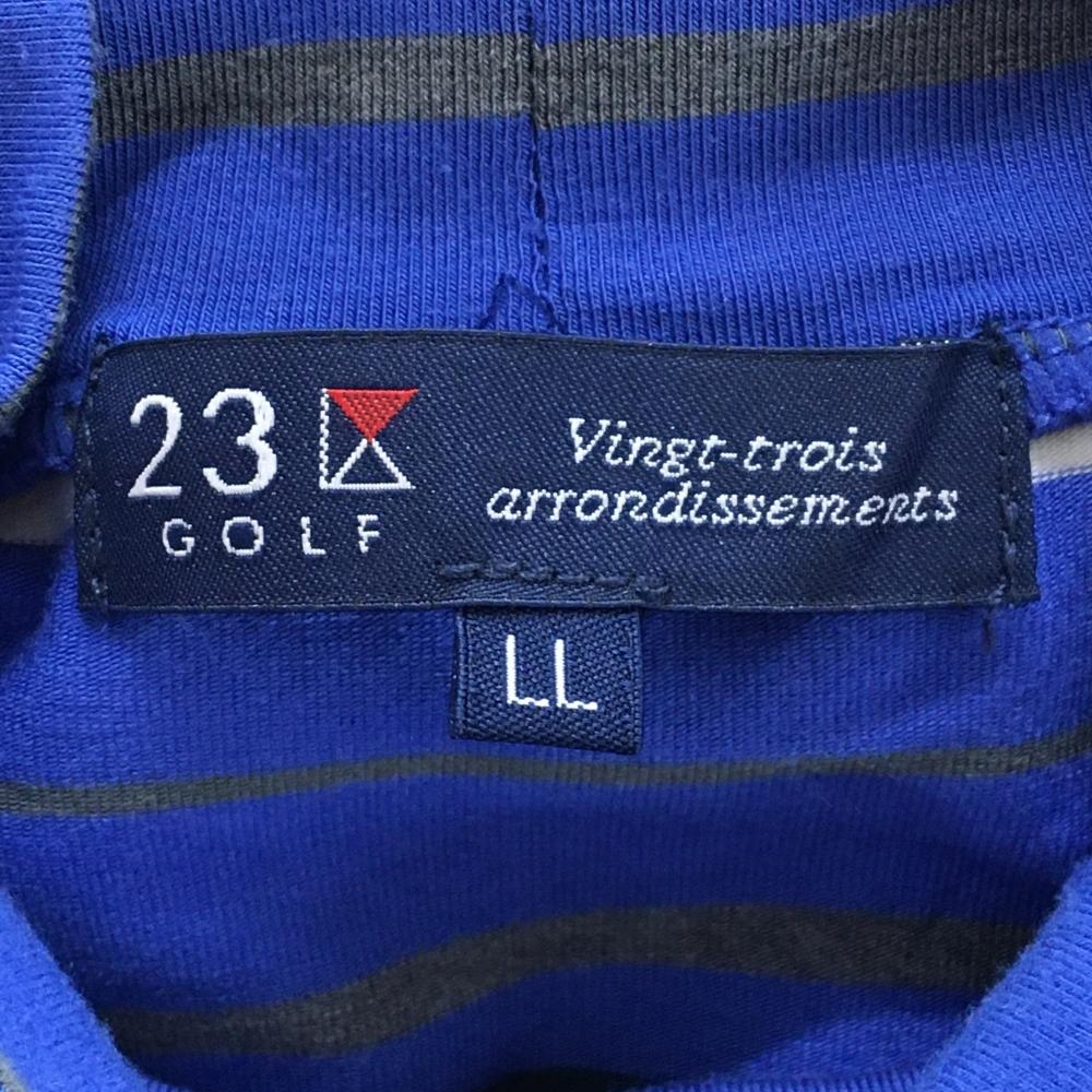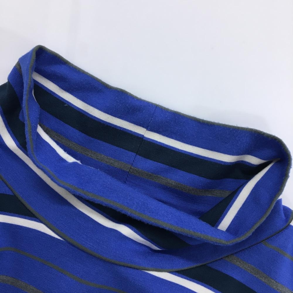 【美品】23区ゴルフ 長袖ハイネックシャツ ブルー×ネイビー ボーダー ストレッチ メンズ LL ゴルフウェア 23区