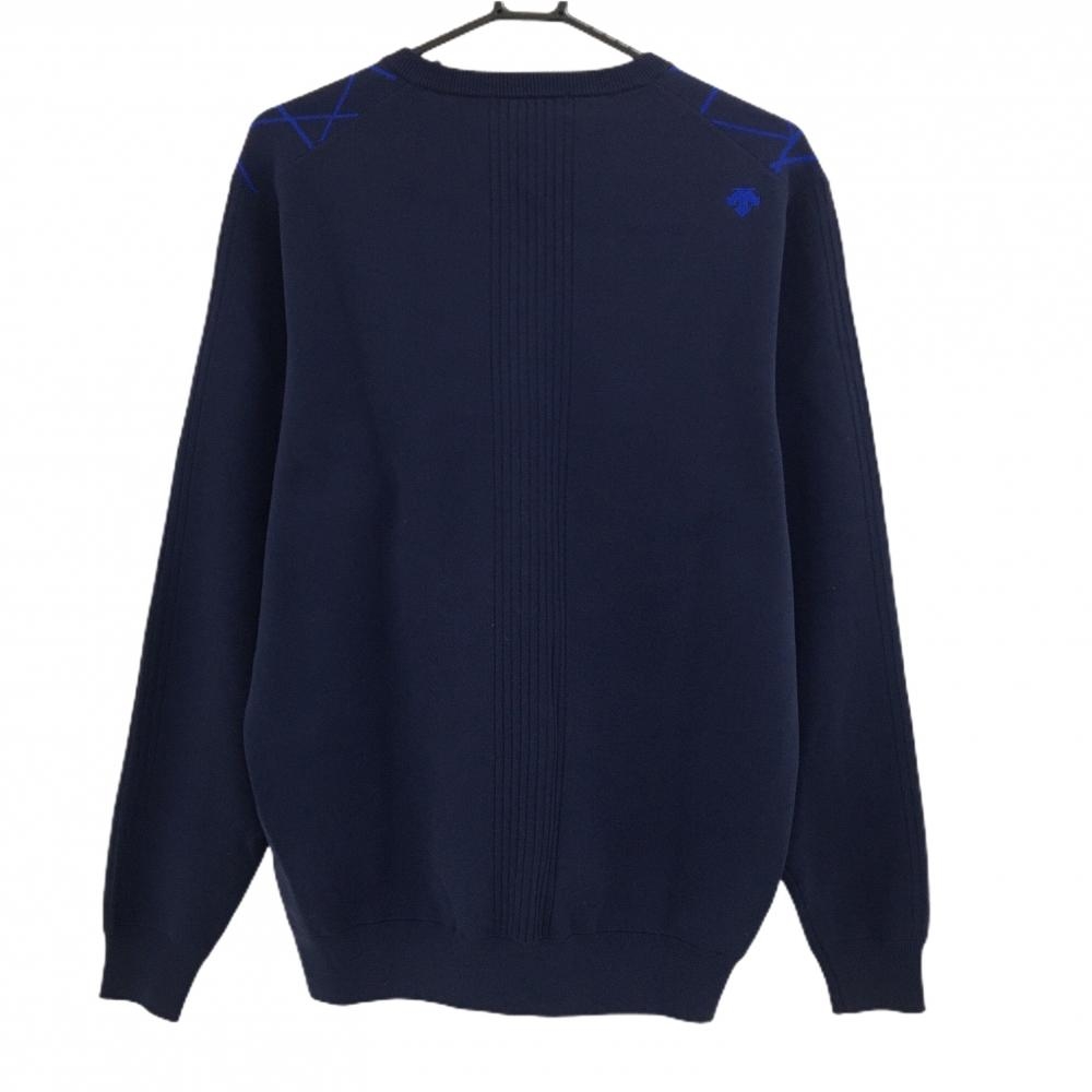 【美品】スリクソンバイデサント セーター ネイビー×ブルー 前一部総柄 Vネック メンズ LL ゴルフウェア SRIXON