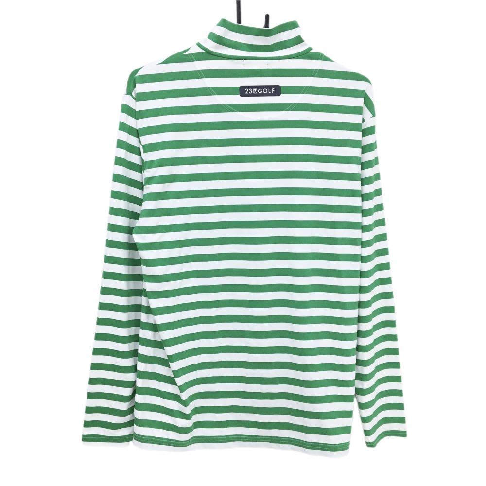 【美品】23区ゴルフ 長袖ハイネックシャツ 白×グリーン ボーダー メンズ LL ゴルフウェア 23区