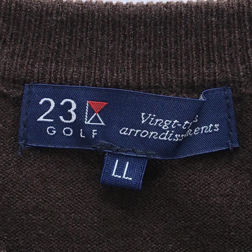 【美品】23区ゴルフ ベスト ブラウン×白 裾ライン メンズ LL ゴルフウェア 23区