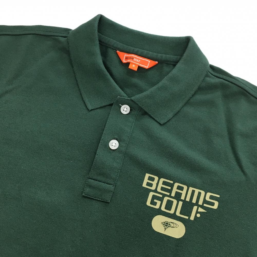ビームスゴルフ 半袖ポロシャツ グリーン×ベージュ 背面ビッグロゴ メンズ S ゴルフウェア BEAMS GOLF
