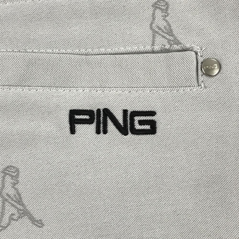 【超美品】ピン ハーフパンツ ライトグレー Mr.PING総柄 ストレッチ レディース S ゴルフウェア PING