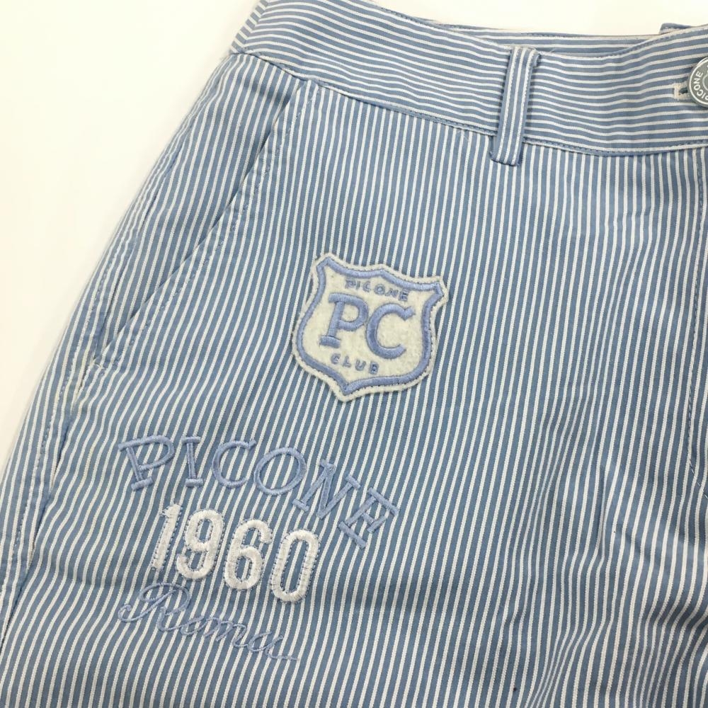 ピッコーネクラブ ハーフパンツ ライトブルー×白 ストライプ 複数ワッペン レディース 40(L) ゴルフウェア PICONE