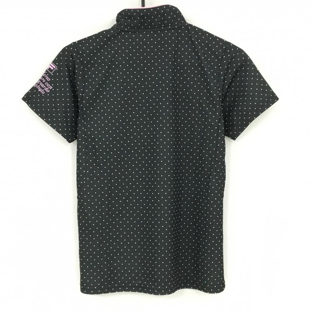 【超美品】フィラ 半袖ハイネックシャツ 黒×白 ドット パイピングライン ハーフジップ ロゴ刺しゅう レディース M ゴルフウェア FILA GOLF