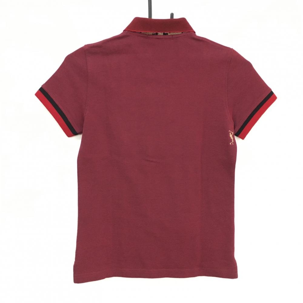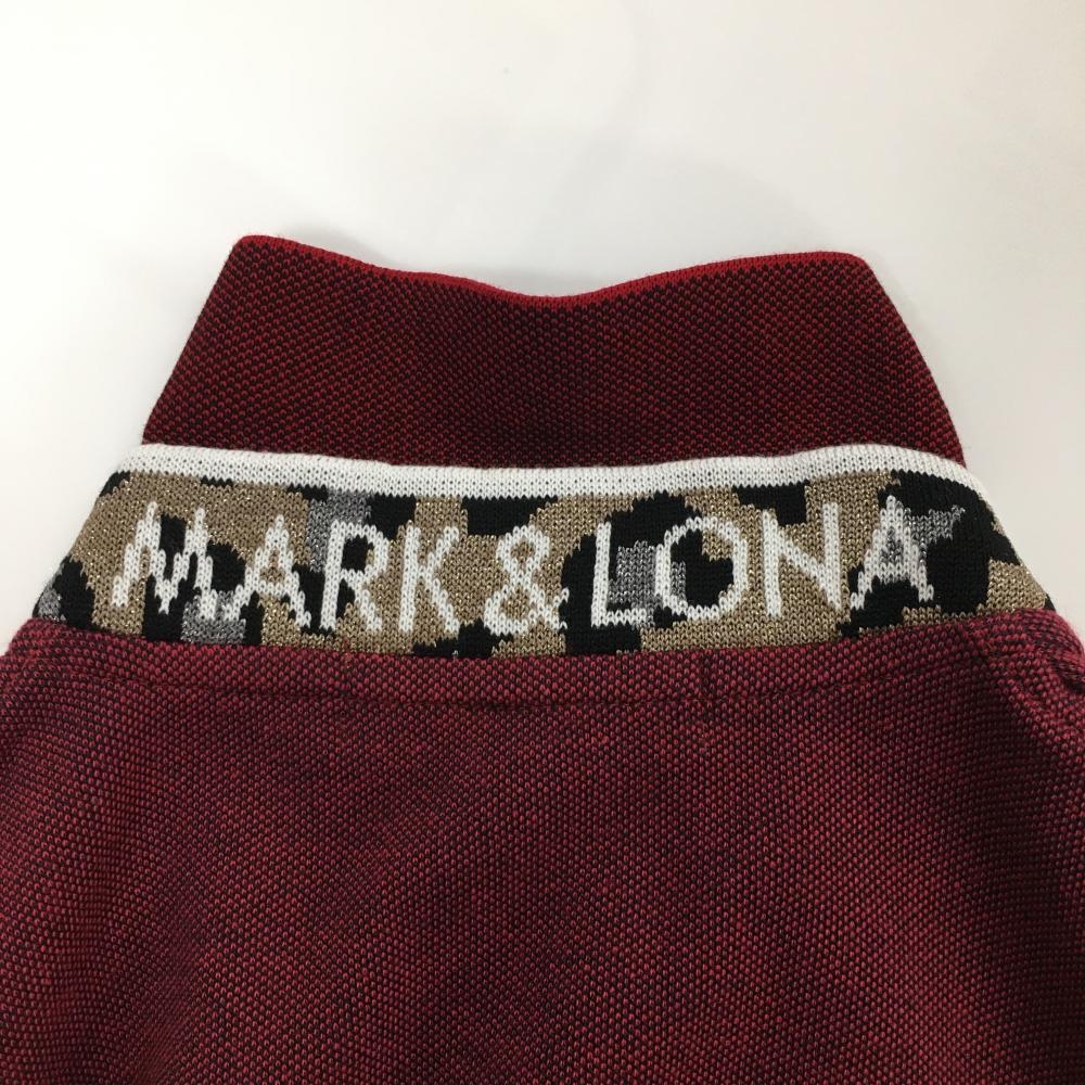 【美品】マークアンドロナ 半袖ポロシャツ ボルドー×黒 ラインストーンスカル 襟裏ロゴ レディース XS ゴルフウェア MARK&LONA