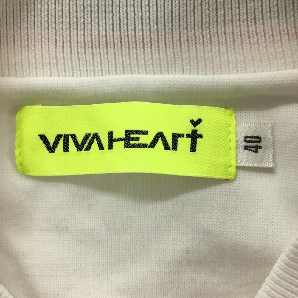 ビバハート ニットブルゾン 白×ネイビー 透かし編み チェリー ロゴワッペン レディース 40(M) ゴルフウェア VIVA HEART