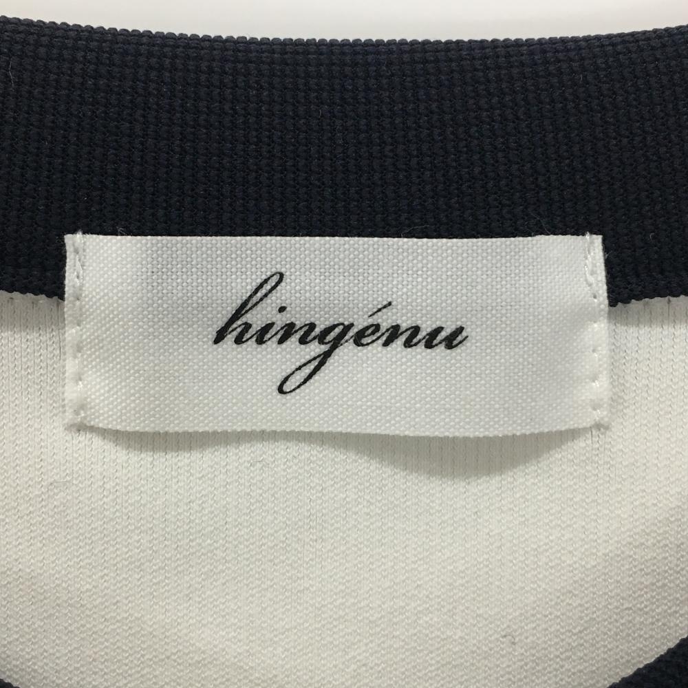 【超美品】アンジェーヌ 半袖ポロシャツ 白×ネイビー 胸ポケット ハーフジップ レディース F ゴルフウェア Hingenu