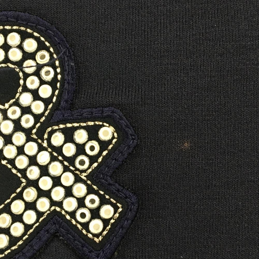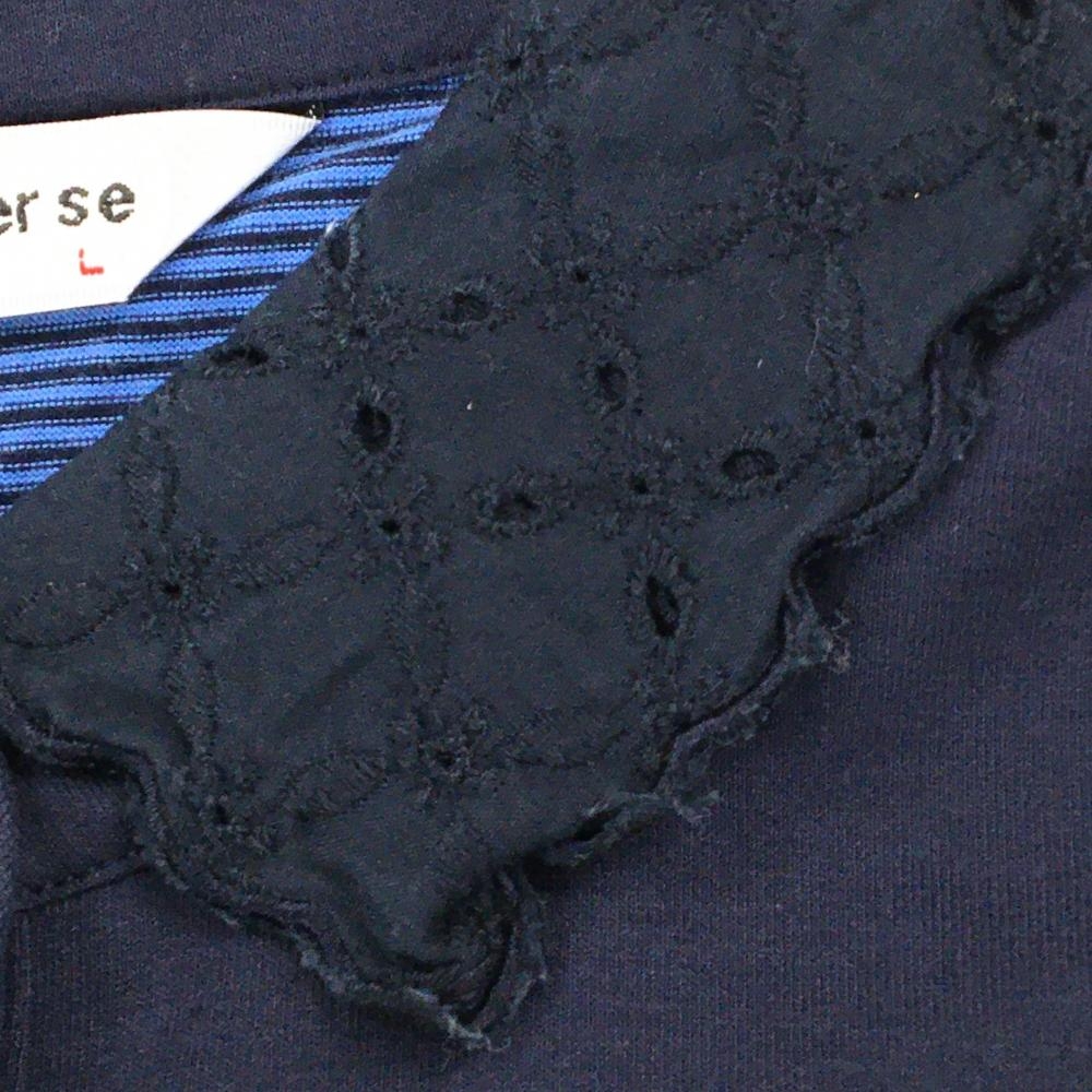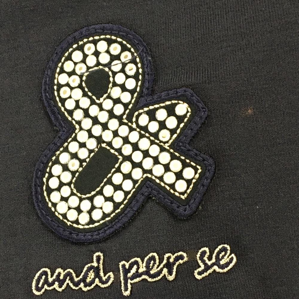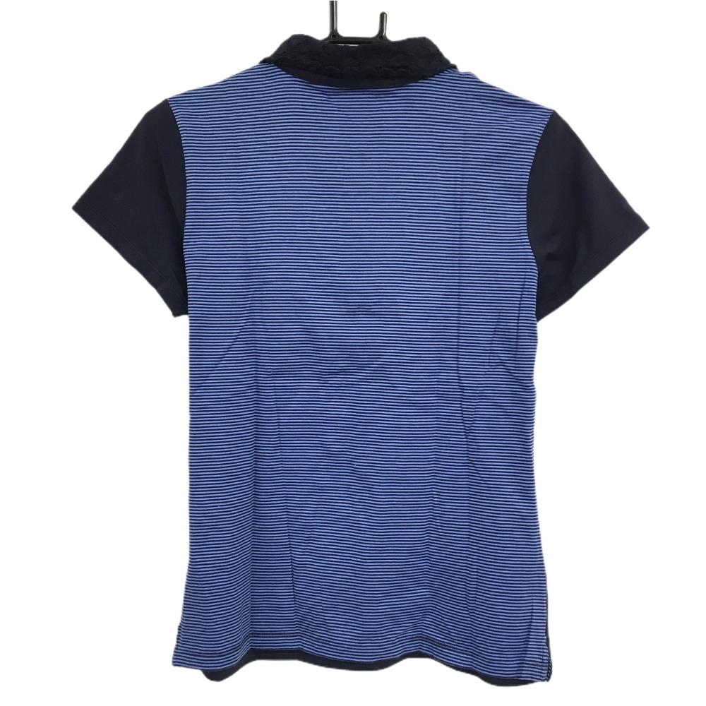 【美品】アンパスィ 半袖ポロシャツ ネイビー 背面ボーダー 襟レース調 ロゴワッペン レディース L ゴルフウェア and per se