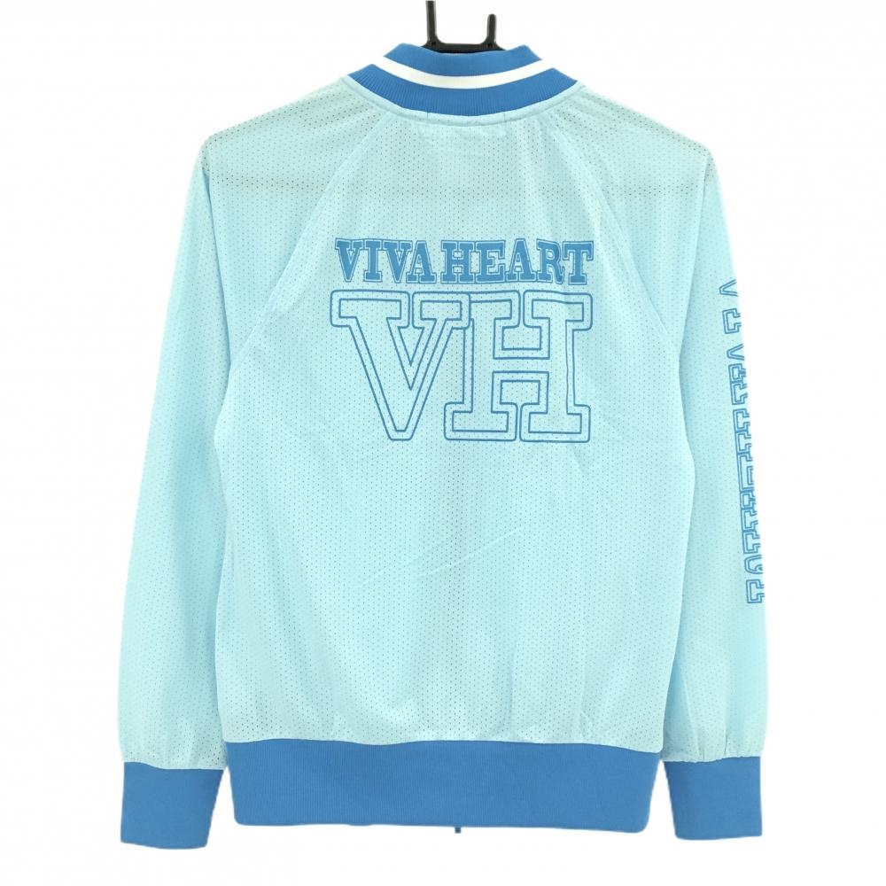 【超美品】ビバハート ブルゾン ライトブルー×ブルー メッシュ生地 ロゴプリント レディース 40(M) ゴルフウェア VIVA HEART