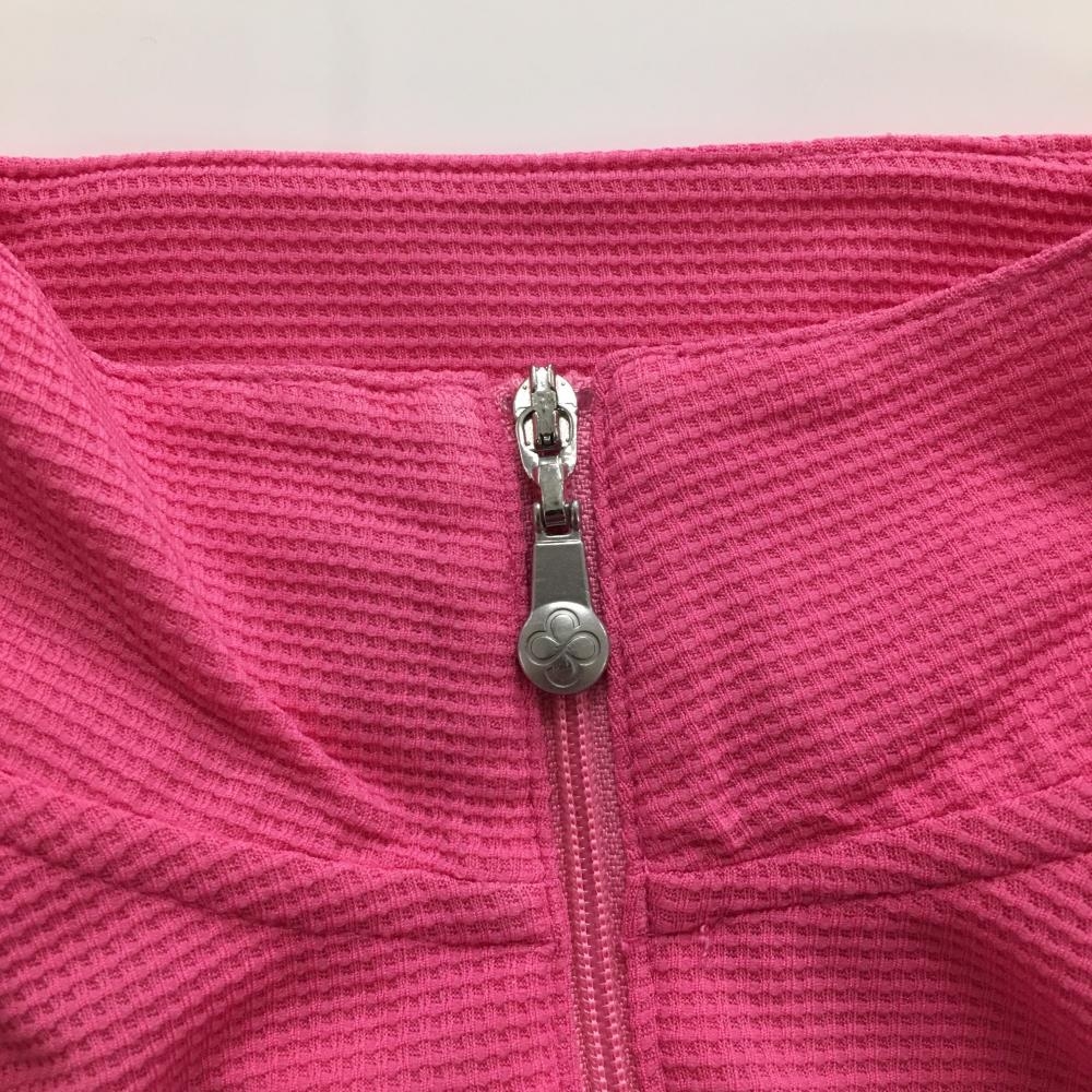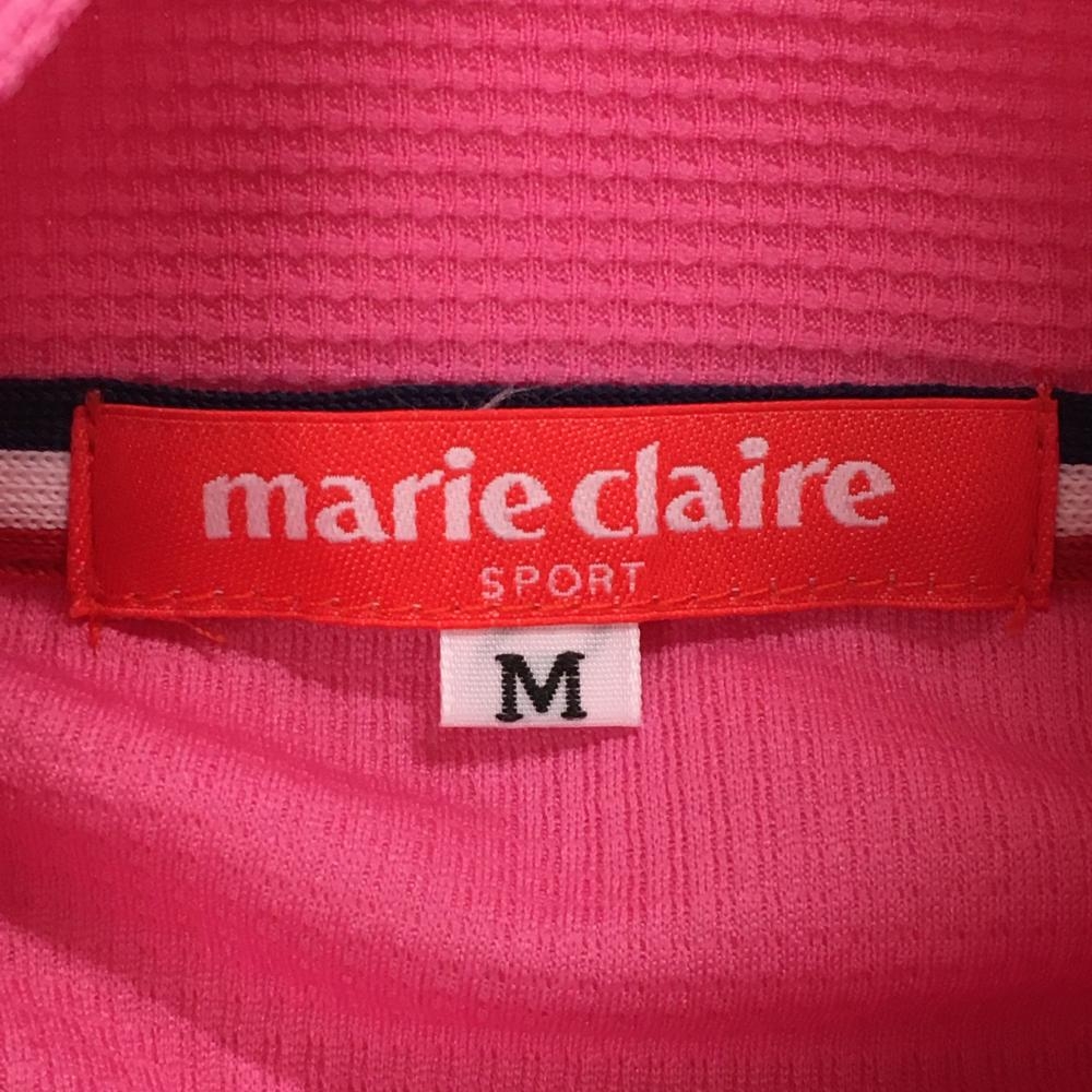 【美品】マリクレールスポール 半袖ハイネックシャツ ピンク 凸凹織 ロゴ刺しゅう ハーフジップ レディース M ゴルフウェア marie claire
