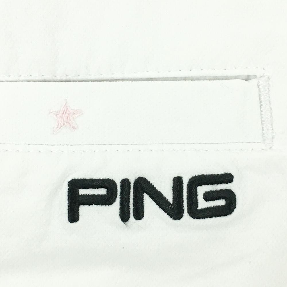 【美品】ピン スカート 白 ロゴ黒 裾フレア ベルト通し・ポケット口刺しゅう有 レディース L ゴルフウェア PING